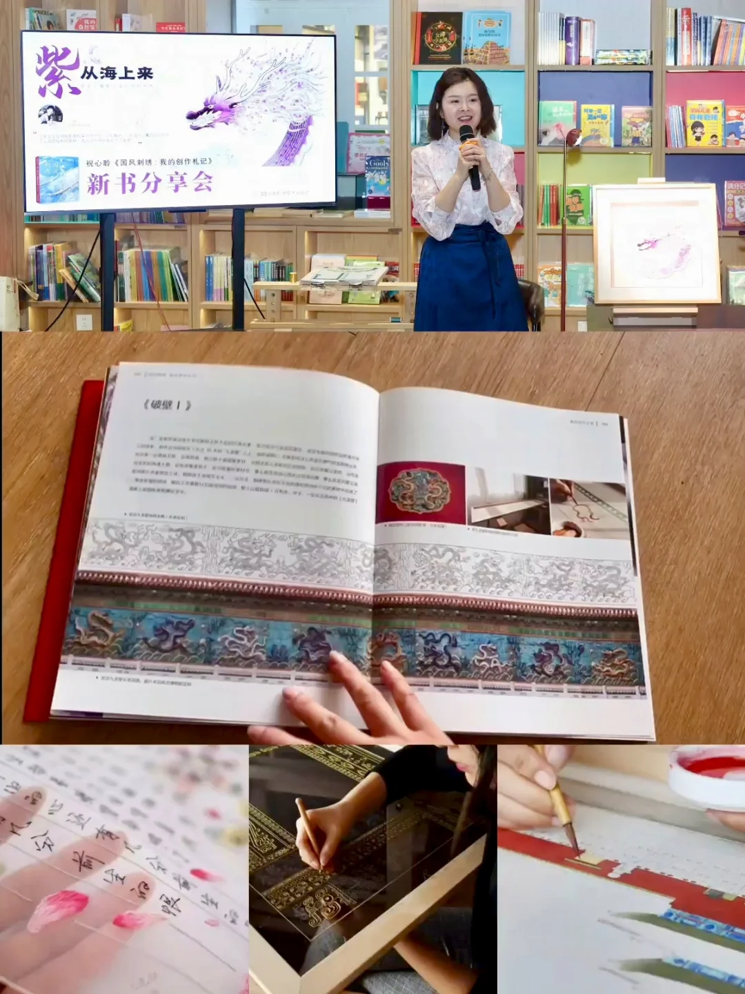 最近真是和刺绣有缘了,昨天上午刚从苏州木渎的“苏绣皇后”沈寿故居(目前是青普文化行馆)退房回沪,下午就来到书城参加刺绣艺术家祝心聆的新书分享会。清代的杰出女性沈寿自创“仿真绣”,口授《雪宧绣谱》记录技艺,自学成才的祝心聆则以“国风刺绣”开创了她的“野路子”刺绣艺术家的之路,亦将多年心得写就《国风刺绣》创作札记,毫无保留地分享给读者。