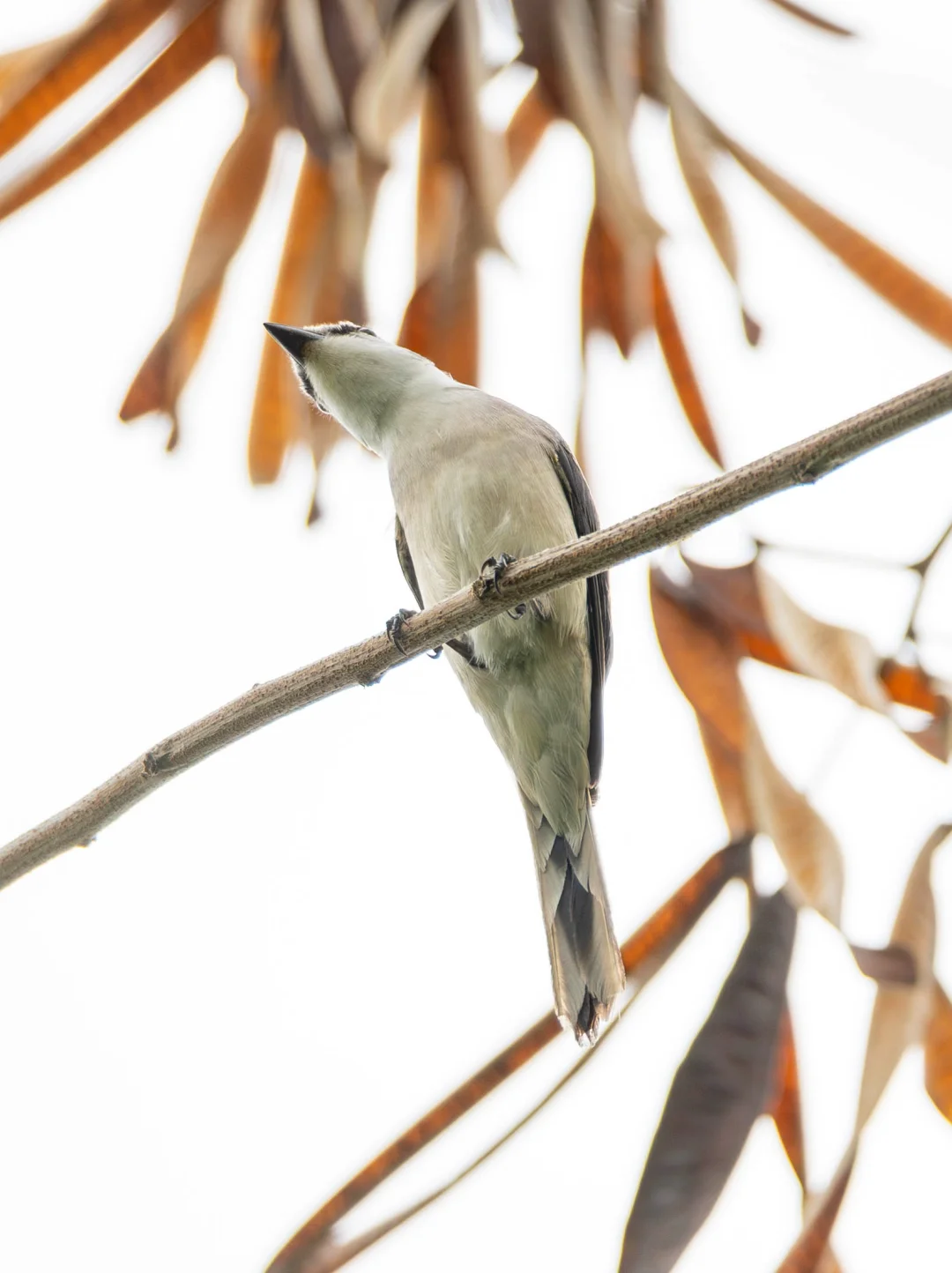 原创拍摄于2025.04 小灰山椒鸟,Swinhoe's Minivet,雀形目鹃鵙科山椒鸟属。是一种小型的黑灰白色山椒鸟。 小灰山椒鸟没有那些彩色的山椒鸟好看,跟它的近亲灰山椒鸟也非常的接近。相比而言,小灰山椒鸟的额部白色部分延伸到了眼后,p1p5比较明显。另外小灰的腰是浅褐色,下体也是脏脏的,没有灰山椒鸟那么干净。 以前在河南见过繁殖的小灰山椒鸟,没想到这次在广东的迁徙季看到了一群小灰山椒鸟迁徙过境的场景。有兴趣的朋友可以近期在深圳和广州的公园里找找。