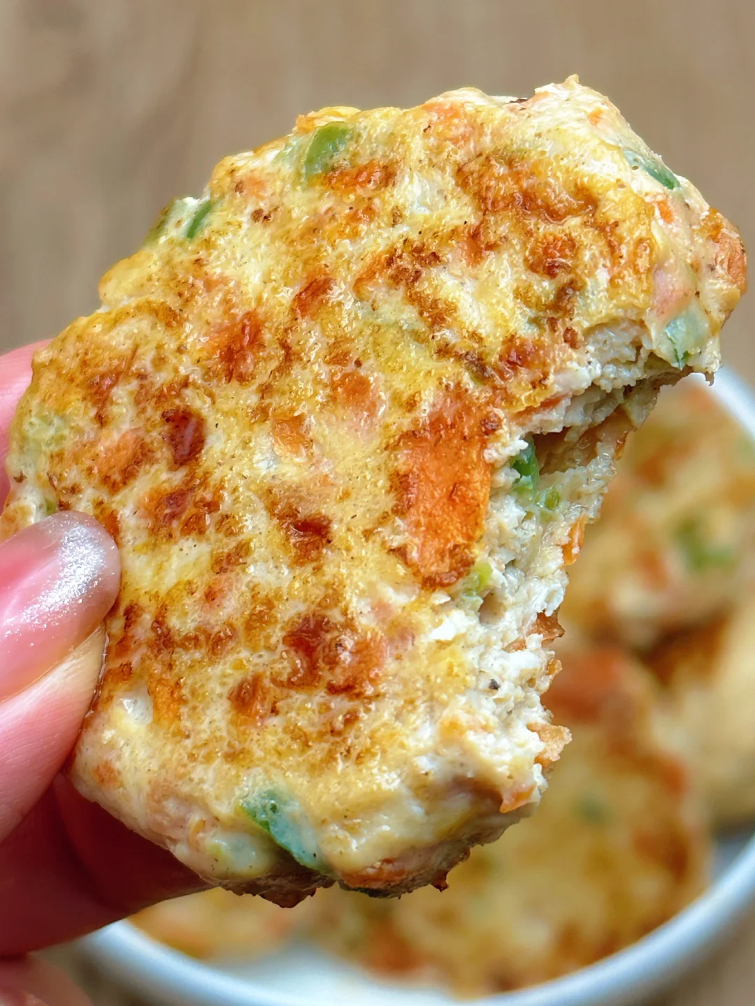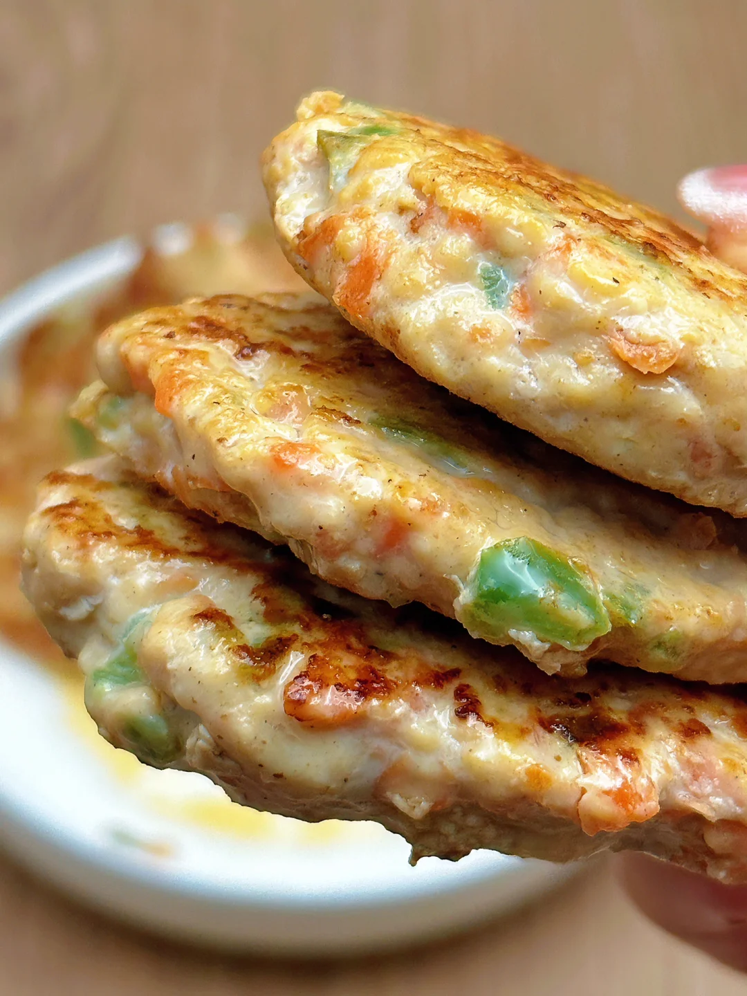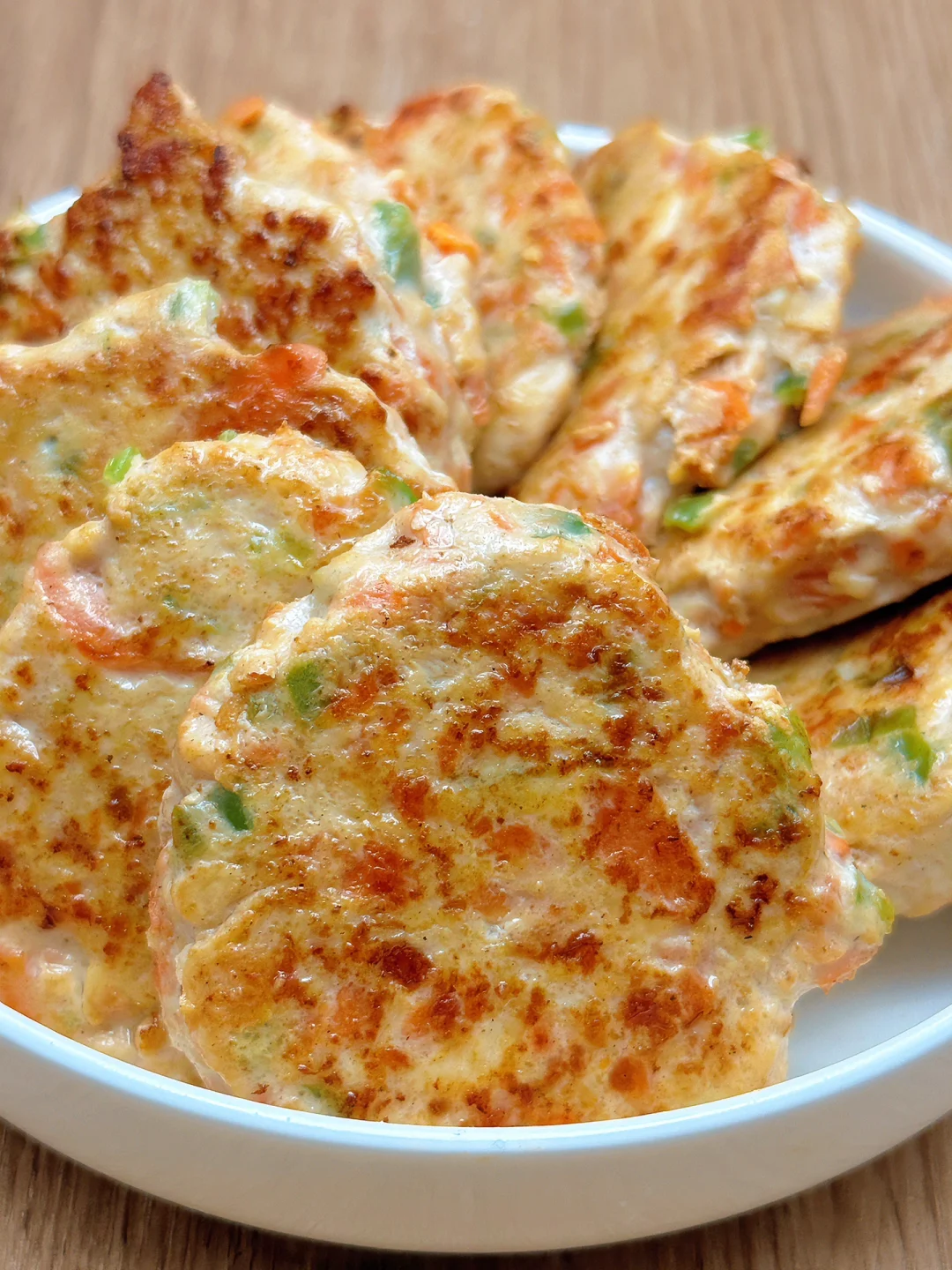 🥗食材:鸡胸肉1块、胡萝卜、青椒(做了10个饼)