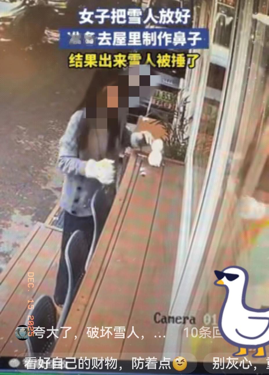 伤害性不高,侮辱性极强!北京,一姑娘在自家屋外的小桌子上精心堆了个雪人,她越看越