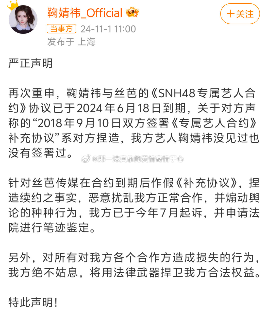合约撕到2033?鞠婧祎硬刚老东家,伪造签名+骚扰合作方太离谱12月15日