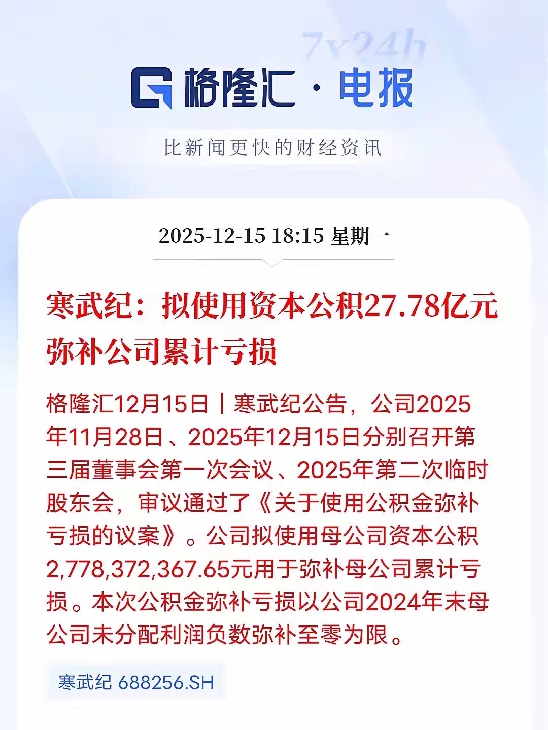 寒武纪27.78亿“填坑”!寒武纪公积补亏,A股科技股该醒醒了寒武纪拟用27.78亿资本公积填平累计亏损,这是新《公司法》落地后A股补亏潮的缩影。账面扭亏虽能修复融资与分红资格,但终究是财务科目调整的“纸面改善”。曾被捧为“寒王”“股王”,其股价与业绩的割裂早已凸显。对硬核科技企业而言,研发转化的持续盈利能力才是根本,过度吹捧不如聚焦主业突破。A股要走得远,终究要回归“重业绩、干实事”的本质。
