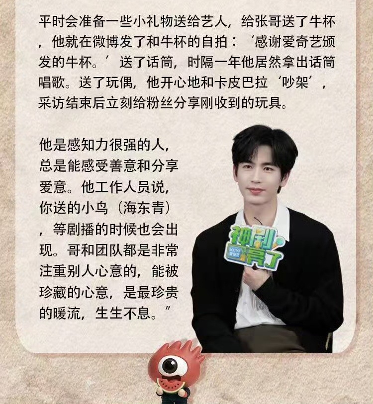 张凌赫会帮工作人员修道具哎呦天呢。。听合作过的同事对张凌赫的评价感受到,他真的是一个无论是节目上工作里生活中都很好很好的人🥹 “在室外做随采调光的时候问他‘要不要换个方向。’他也会说没事儿啊能接受,你们还暴晒着,我还在房檐下呢,换个方向你们还要重弄”送的小礼物都会拍照发微博是感知力很强、会感恩、会充满善意的人!