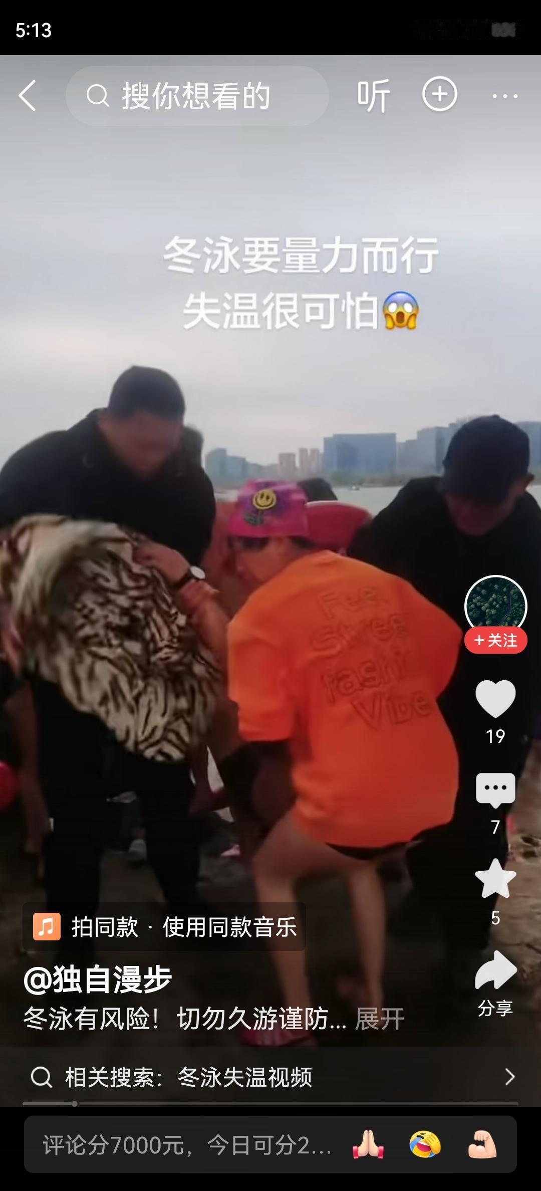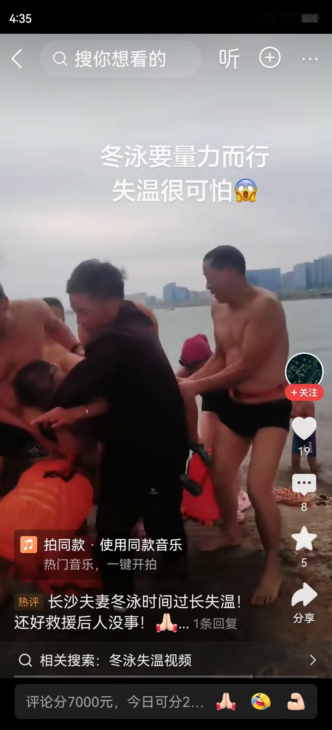 昨天,头条里看到一段视频,说的是长沙的一对夫妻,冬泳时间过长,纷纷失温落水。 还好,由于岸上边的人,抢救及时,夫妻二人才幸免于难。 看到这里,又一次验证了我的看法,“冬泳不科学,乱来有风险。” 关于冬泳,我从未尝试过。不过,坚持一年四季的冷水浴,却成了我近二十年的生活习惯。 说起冷水浴与冬泳,它们之间即有相同之处,又有不同之处。相同之处,就是都在冬季里,让身体进入冷水中浸泡。不同之处,是两者的环境条件截然不同。 我洗的冷水浴,是在浴池里进行的。在冷水浴之前,我首先要进行身体升温预热。在热水池里让身体完全升温后,然后,在进入冷水池中。在冷水中控制的时间,根据水的温度和自己身体的忍受能力而决定。 反过来,咱们再看看冬泳吧!冬泳,都是在空旷的室外进行的。冬泳前,除了进行身体四肢活动外,身体基本上处在一种寒冷的状态。 如果室外的气温在零度左右,水温在零上四.五度下水的话,下水的时间也就是5到10分钟。超过这个时长,风险就会加大。尤其是上了岁数的老年人,在寒冷的天气里冬泳,风险系数更会加大。 所以,在冬季里冬泳,一定要视自己的身体条件安排进行,切莫盲目跟风。一旦出现危险,受害的是我们自己。