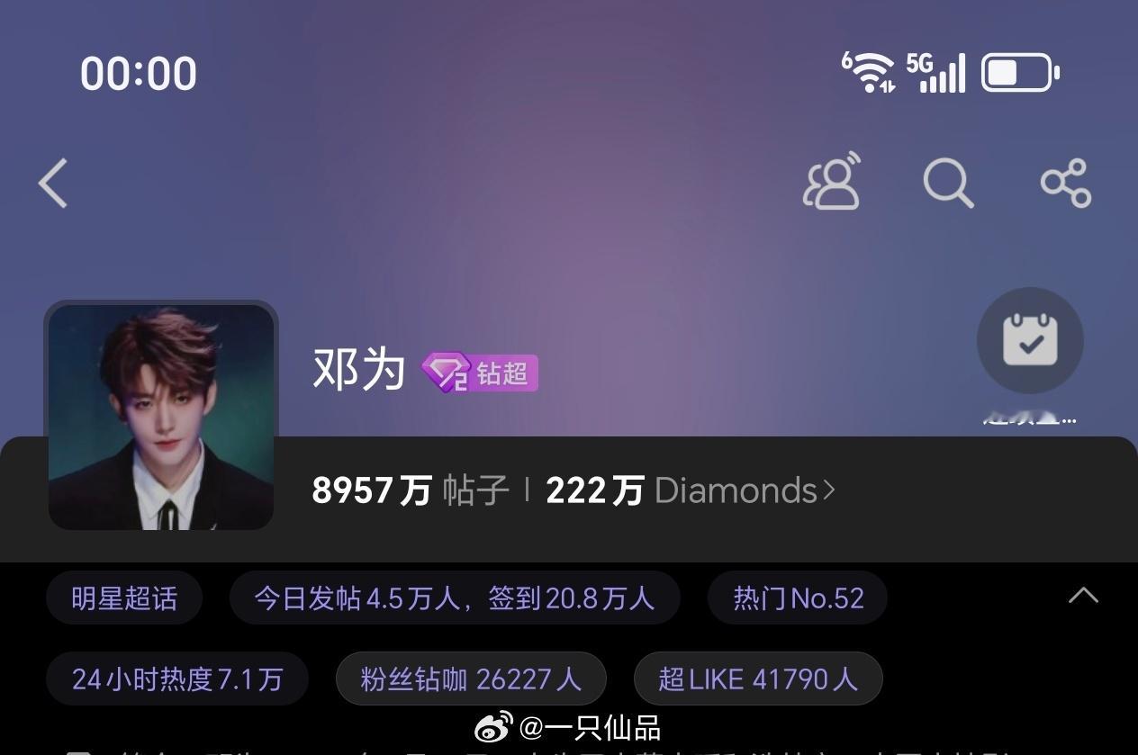 邓为超话昨日发帖4.5万+,超like4.1万+vocal,邓为超话新头像真是绝了,仙品中的仙品