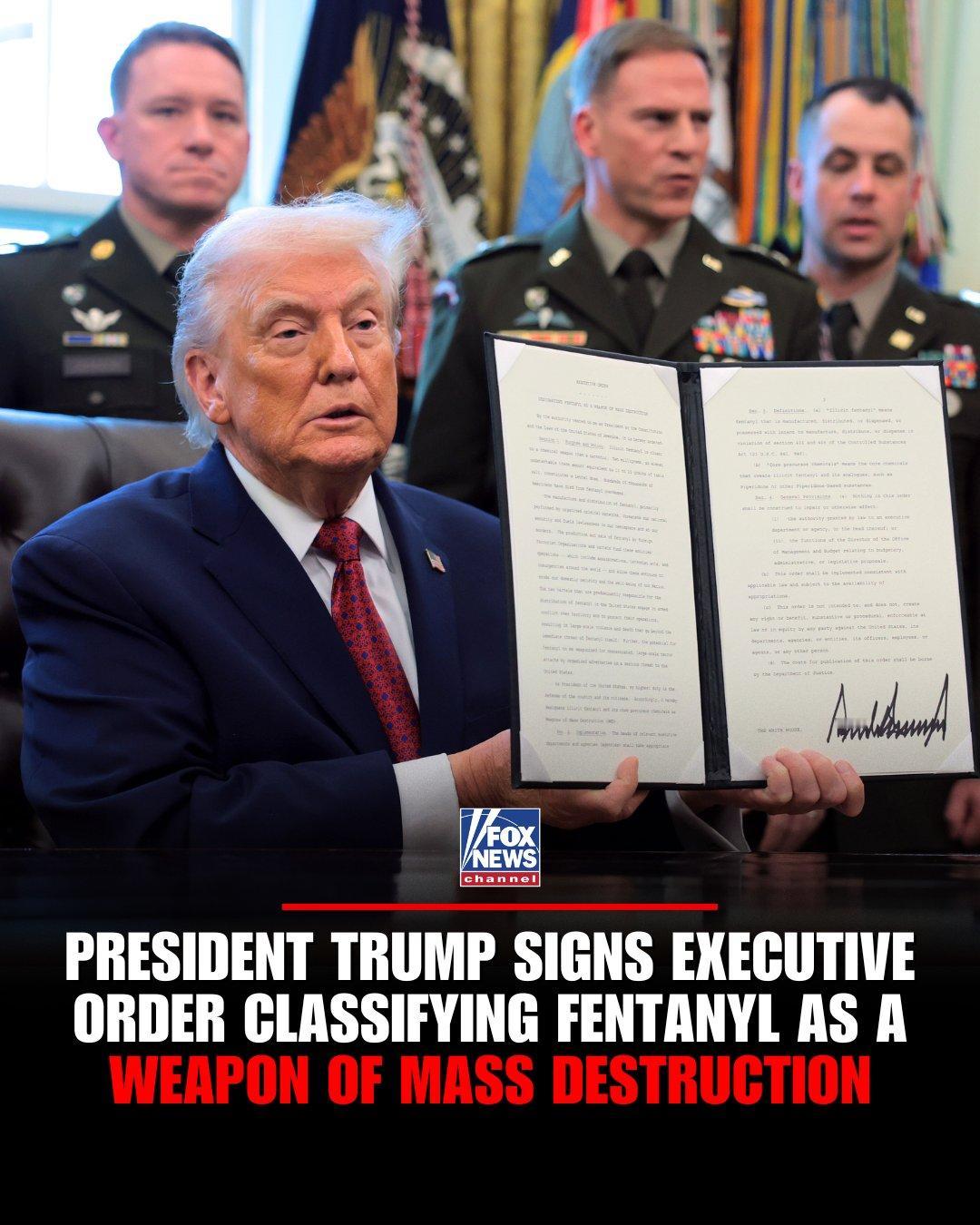 新闻快讯——让美国重归安全”特朗普总统签署行政令,将芬太尼列为“大规模杀伤性武器”,以此升级联邦政府打击这种致命毒品的行动力度。