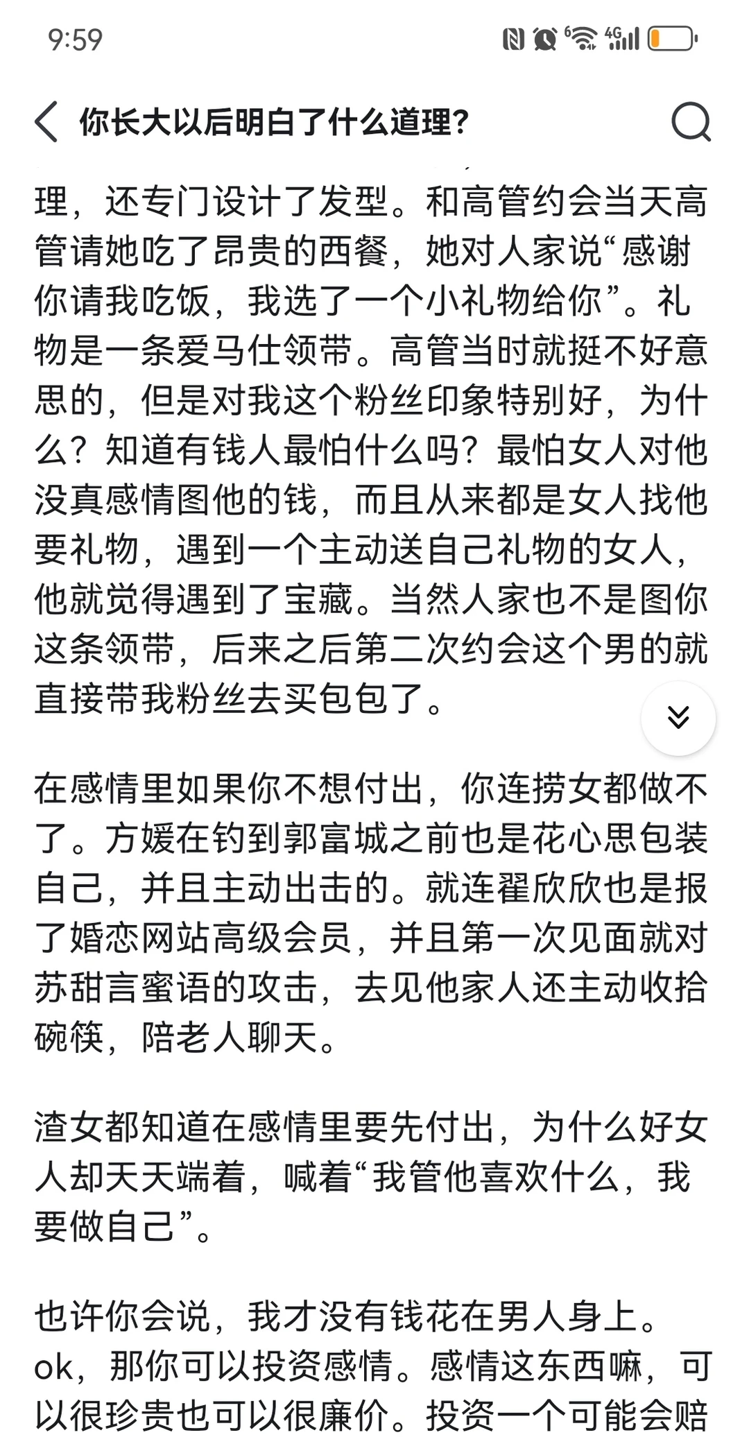 性学专家李银河说:“给所有男人一个忠告,不管一个女人多漂亮,身材多出众,哪怕好到