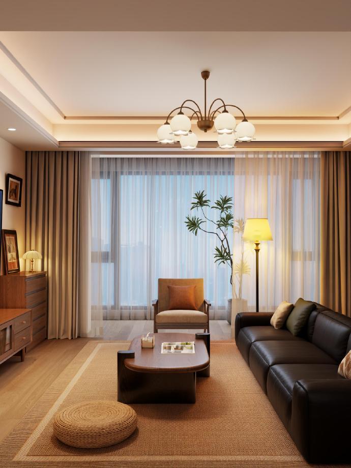 纯白色奶油风+亮面地砖,客厅地毯感觉加分很多,精装房的可以参考..