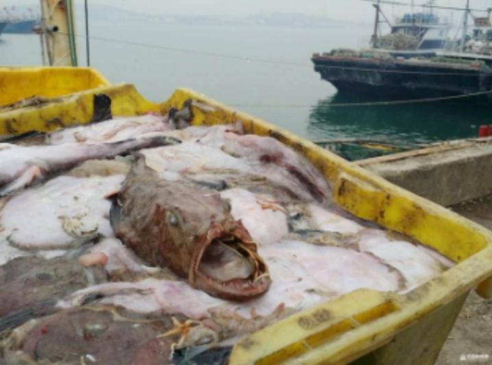 青岛沙子口渔港惊现“深海丑八怪”大丰收!十几斤重安康鱼堆成山,每斤3元遭疯抢,网