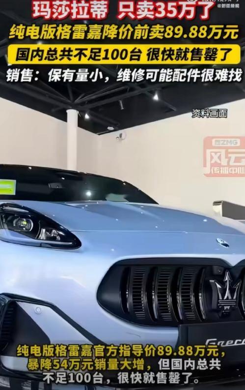 销售直言不建议买35万玛莎拉蒂 曾经高攀不起的玛莎拉蒂只卖35万了 ,这就是新能源车带来的好处,老牌豪华车也要跟着转型了,35万的玛莎拉蒂可以说价格罕见不建议客户买纯电版,主要是因为保有量小,万一以后出现问题,维修会很麻烦,配件很难找……那是不是可以整一台投资,当配件卖,能赚一台玛莎拉蒂的钱不谁在抢35万玛莎拉蒂