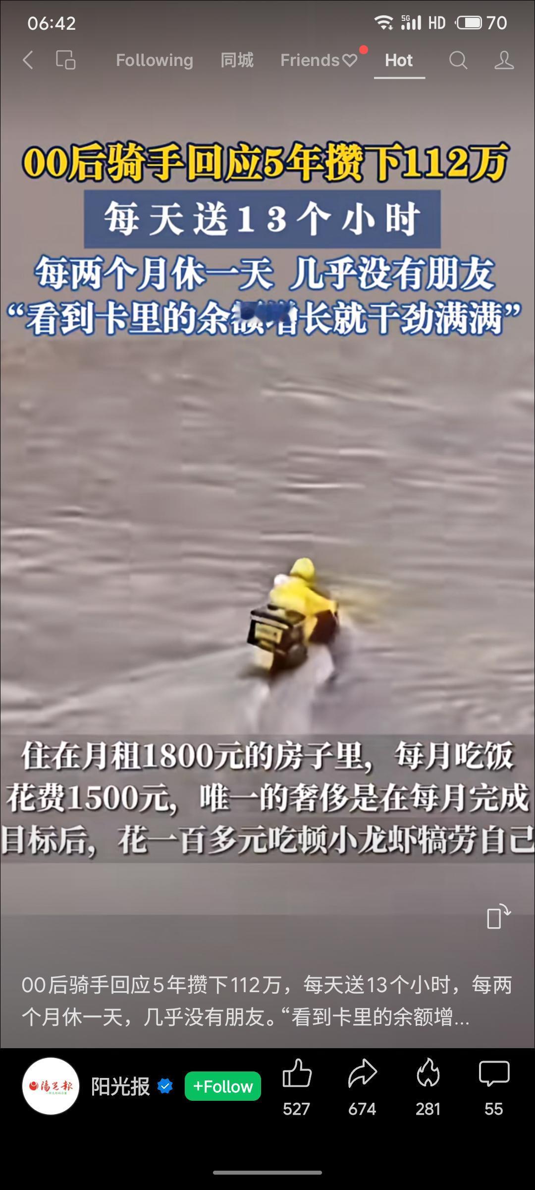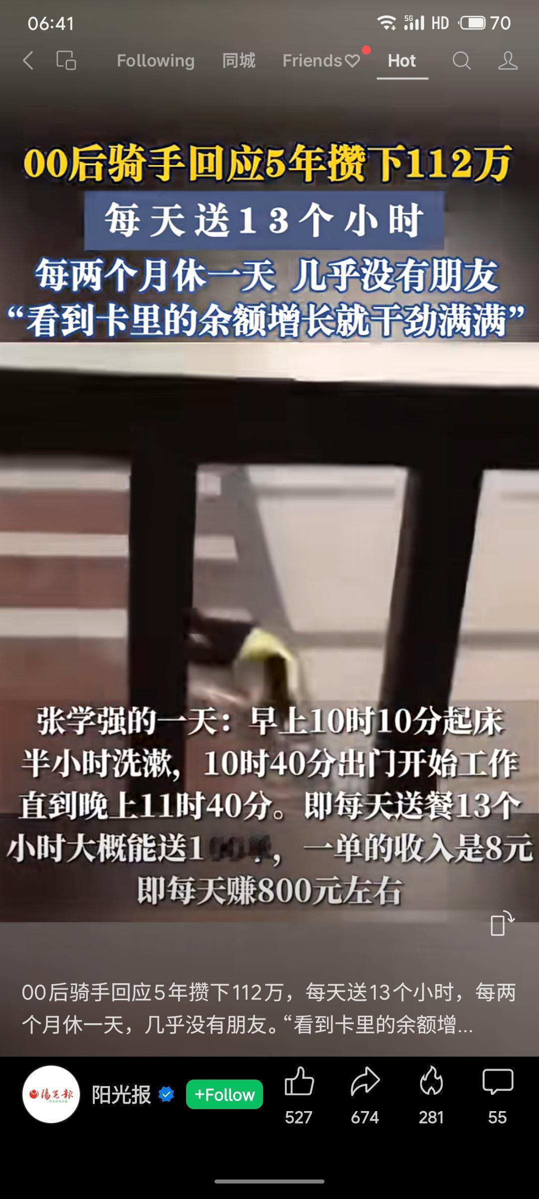 福建一名25岁外卖骑手以每日13小时、每两月休一天的强度工作五年,在偿还债务后攒下112万元。他月支出仅三千余元,以余额增长为动力,折射出部分年轻人以极端节俭与高强度劳动换取财务安全的生存选择,其毅力与牺牲同样引发对工作生活平衡的深思。