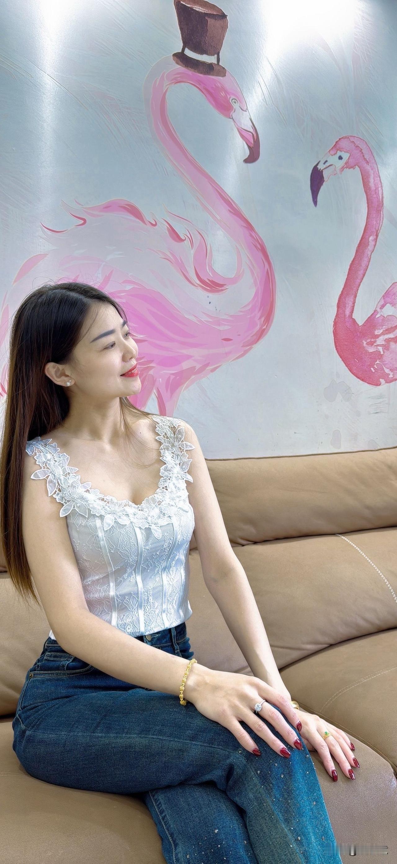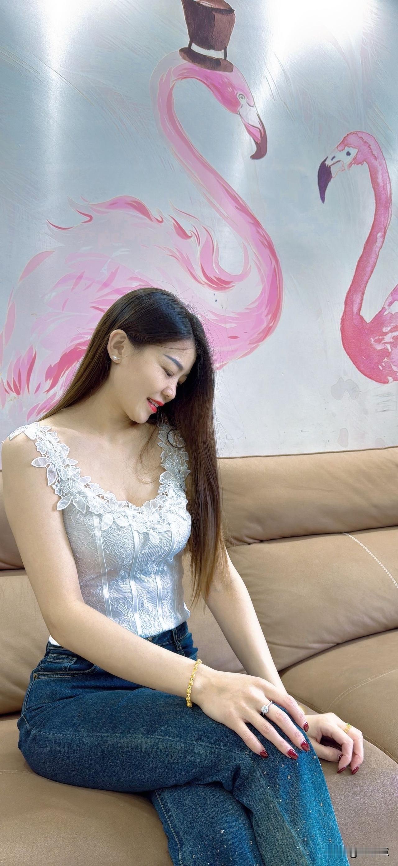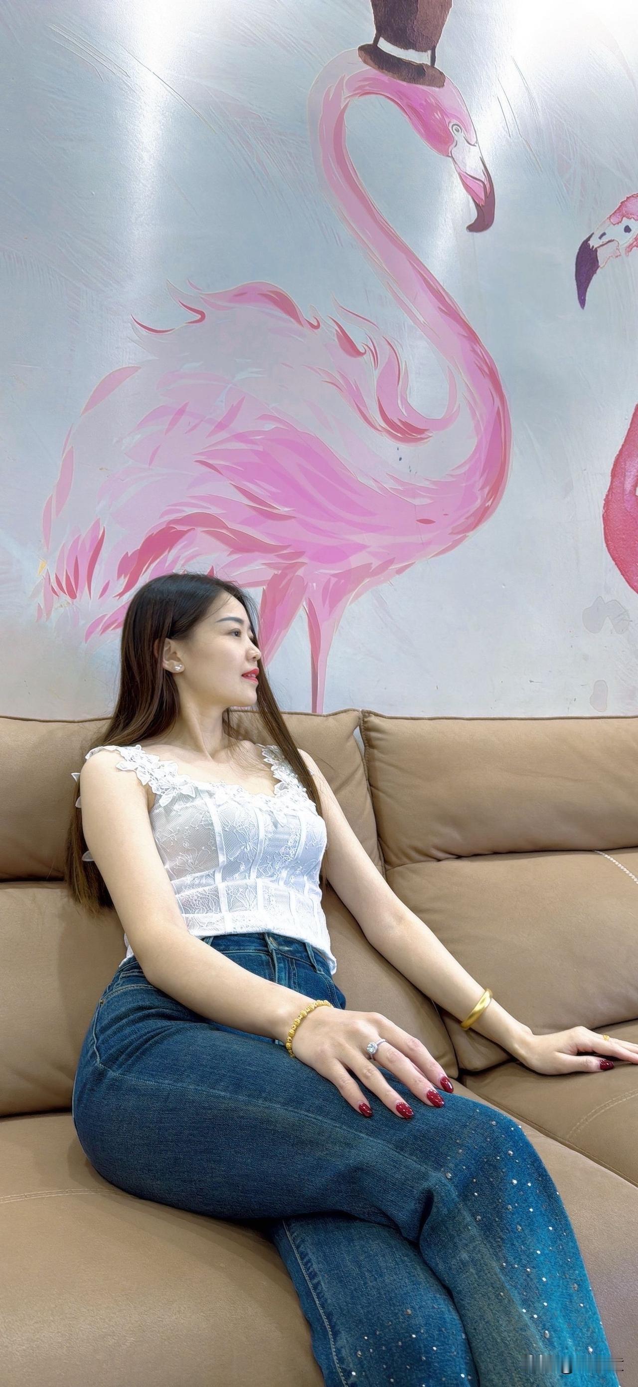 少女心满满,粉色火烈鸟背景下的甜美自拍💖