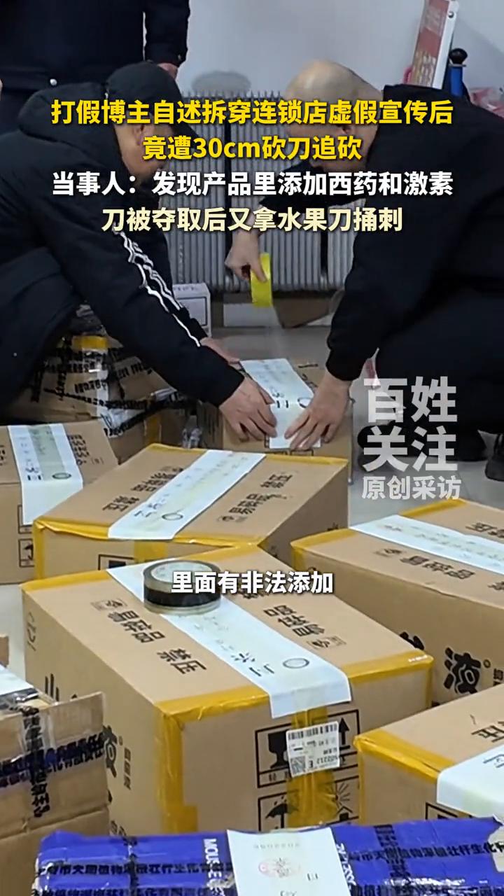 打假博主自述拆穿连锁店虚假宣传后竟遭30cm砍刀追砍。当事人:发现产品里添加西药