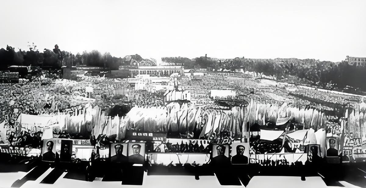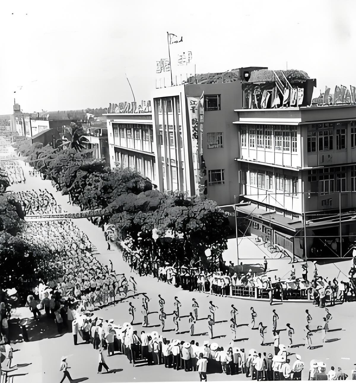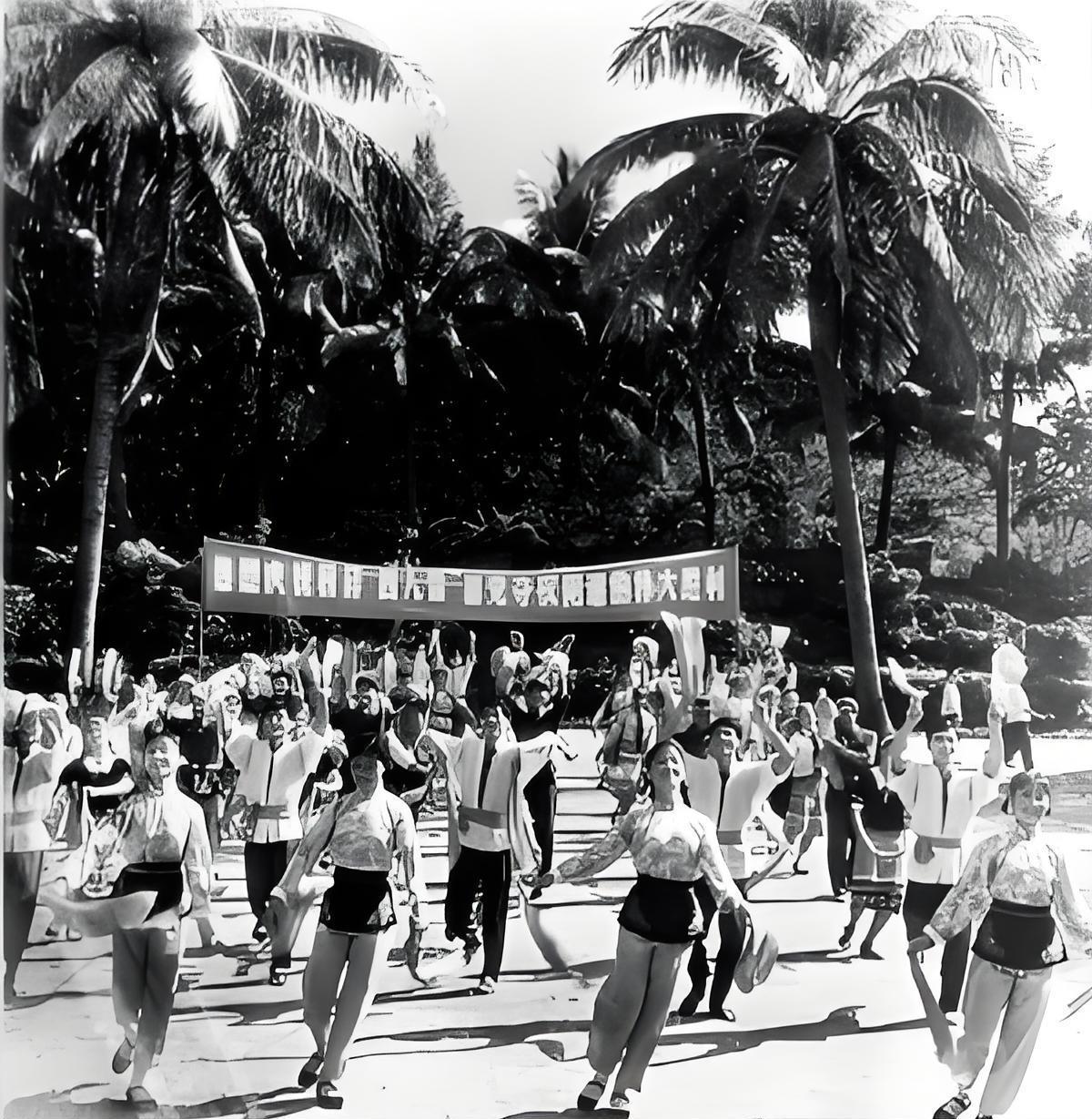 照片拍摄于1976年10月,记录的是18万海口军民集会游行庆祝粉碎“四人帮”的伟大胜利。图一以海口人民广场为背景,远处依稀可见的横幅上写着“打倒王洪文、张春桥、江青、姚文元反党集团”;图二中的演员在海口人民公园载歌载舞,记录了人民群众对粉碎“四人帮”的喜悦之情;图三是海口市民走上街头大游行,庆祝粉碎“四人帮”的热闹场景。