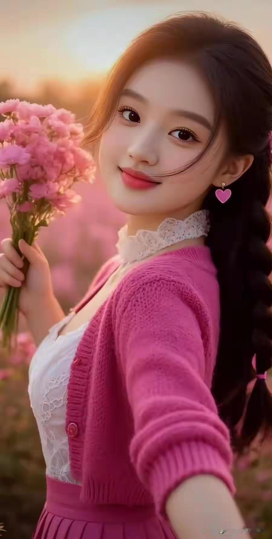 粉色花海中的甜美少女,手持一束粉花,微笑如春日暖阳。