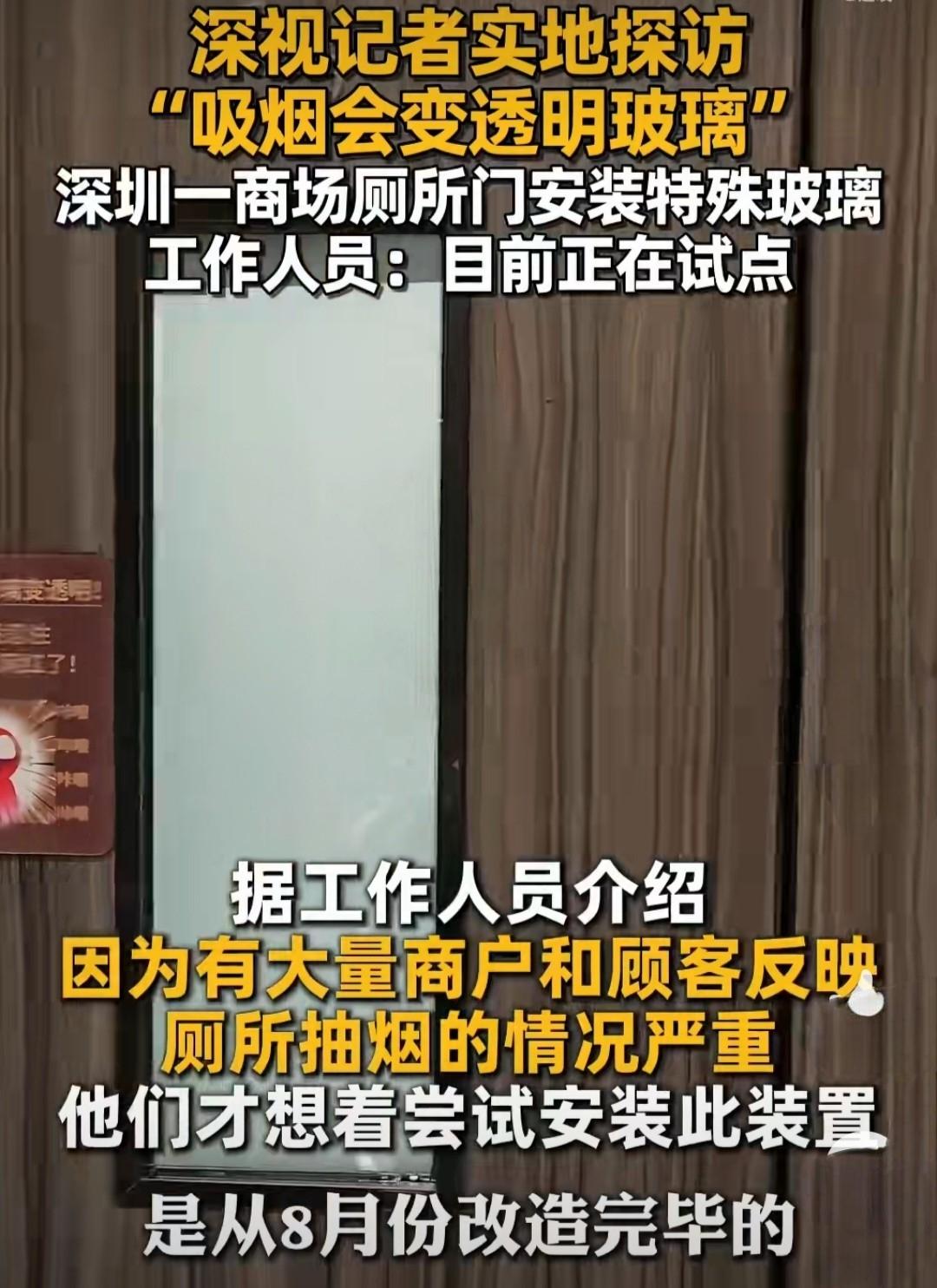 深圳一地厕所抽烟门就变透明,获得不少市民的认可。网友:建议全国推广。 深圳又