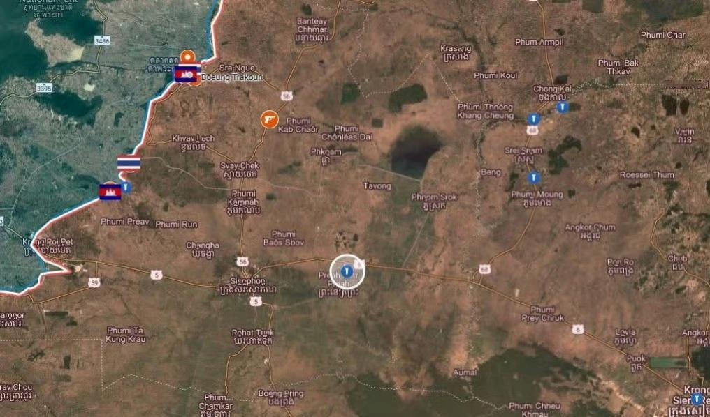 15日,泰国空军的F-16战斗机对柬埔寨军队位于泰越边境深处约72公里处的武器弹药库进行了精确空袭。 该武器弹药库位于帕内帕县(Phra Net Phra),毗邻班泰米猜县(Bantia Mian Chai),靠近斯里索蓬县(Srisopon)和帕塔邦县(Phra Tabong),以及暹罗府(Siem Rath)。