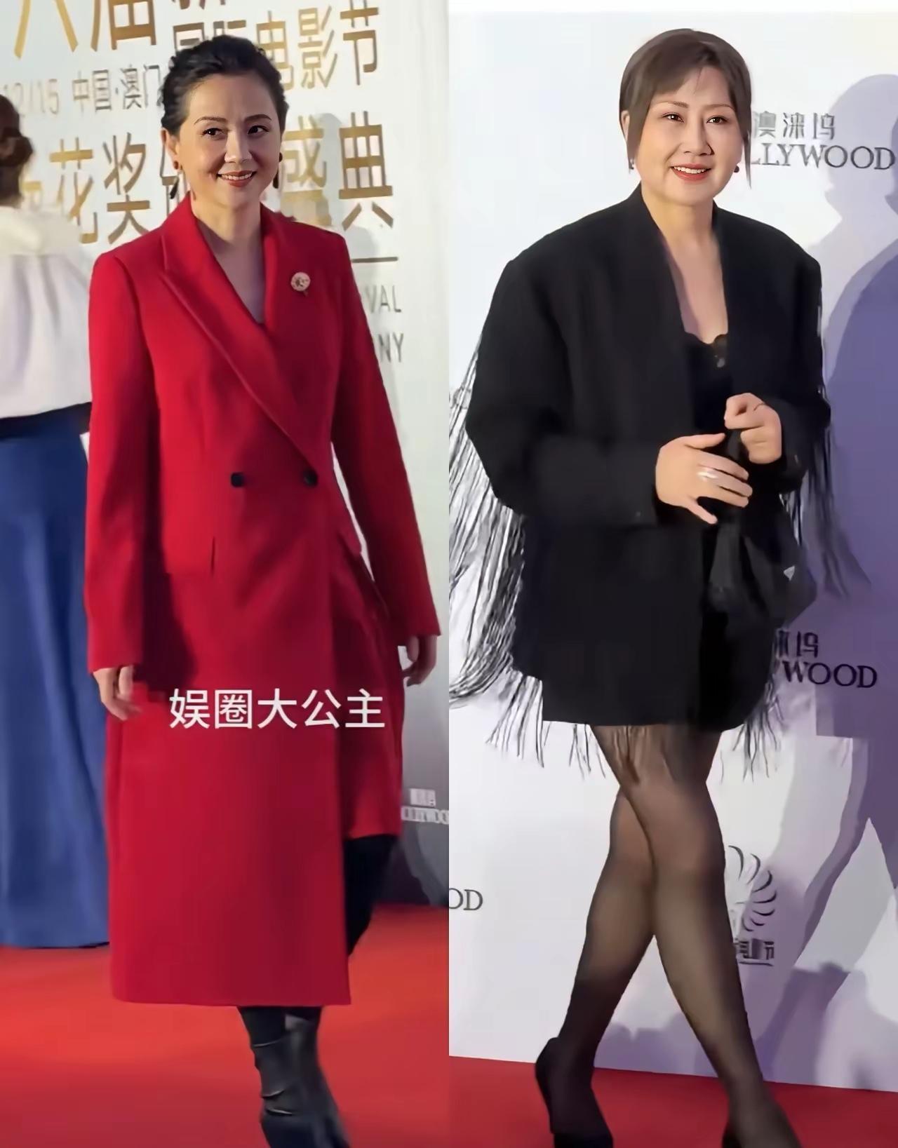 看张凯丽和陶慧敏同场,总算明白“穿衣懂年龄”有多重要。 张凯丽一身黑色流苏外套配超短裙黑丝,高跟鞋踩得带风,女团范拉满。不是说这样不好,只是镜头里她露出的腿虽然纤细,但皮肤松弛的纹路藏不住,硬撑的少女感反而显得局促。 另一边陶慧敏穿红色长呢外套,配长靴,裹得严实却丝毫不显臃肿。红色衬得她气色透亮,合身的剪裁藏住了身材变化,举手投足都是舒展的优雅。脸上的细纹挡不住温婉,反而像时光沉淀的柔光。 其实穿衣哪有绝对的对错?但到了一定年纪,比起硬追潮流,找对风格更重要。张凯丽的敢穿确实吸睛,可陶慧敏那种“我接受岁月,也懂得疼自己”的从容,看着更让人舒服——保暖又体面,比强行装嫩顺眼多了。 年纪从不是枷锁,可硬跟自己的身体较劲,偏要穿不属于这个阶段的衣服,反而容易暴露短板。就像陶慧敏这样,选对颜色、穿对版型,把岁月的痕迹变成独特的韵味,才是真的会穿。 说到底,穿衣服终究是穿给自己舒服。能和年龄和解,懂得用穿搭放大自己的优势,比盲目跟风潮高级多了。