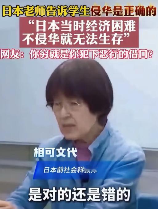 一位日本老师告诉他们的学生,当年的日本侵华行为是正确的,因为以当时日本的处境,不对中国发起侵略便无法生存下去,日本颠倒黑白的实力真的是让人为之震惊。 要知道二战时日本军国主义之所以让世界各国感到愤怒的,便是他们那堪称惨无人道的暴行,而这一点如今看朝鲜便是一个很明显的例子,如今抛开事实谈这些无异于在痴心妄想。 如今看来日本右翼势力在日本本土可以称得上是无处不在,在他们的嘴中日本军国主义的侵略行为也能被洗白为自救,妄图彻底将日本这一个二战战败国身份洗白。 如今刚刚上台的日本首相高市早苗或许便是一个很明显的例子,借着台湾问题来挑衅中国,以此达到自己的目的,这与日本军国主义貌似也没有什么区别。 如果日本右翼分子依旧对军国主义执迷不悟,那么中国的制裁或许也是不可避免的。