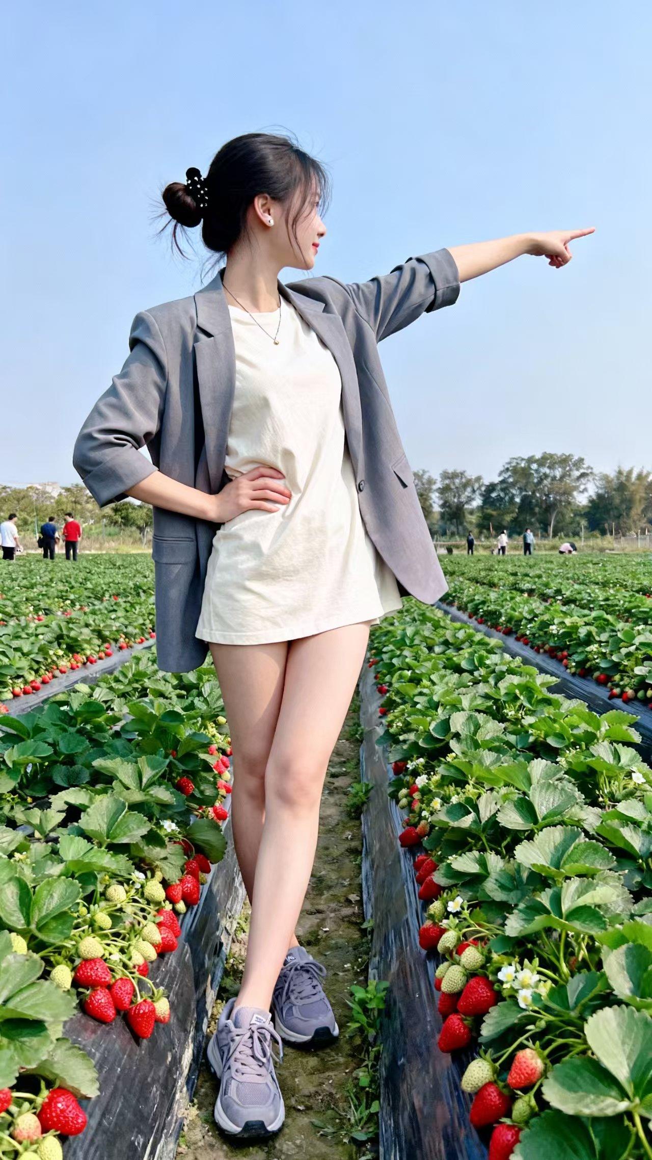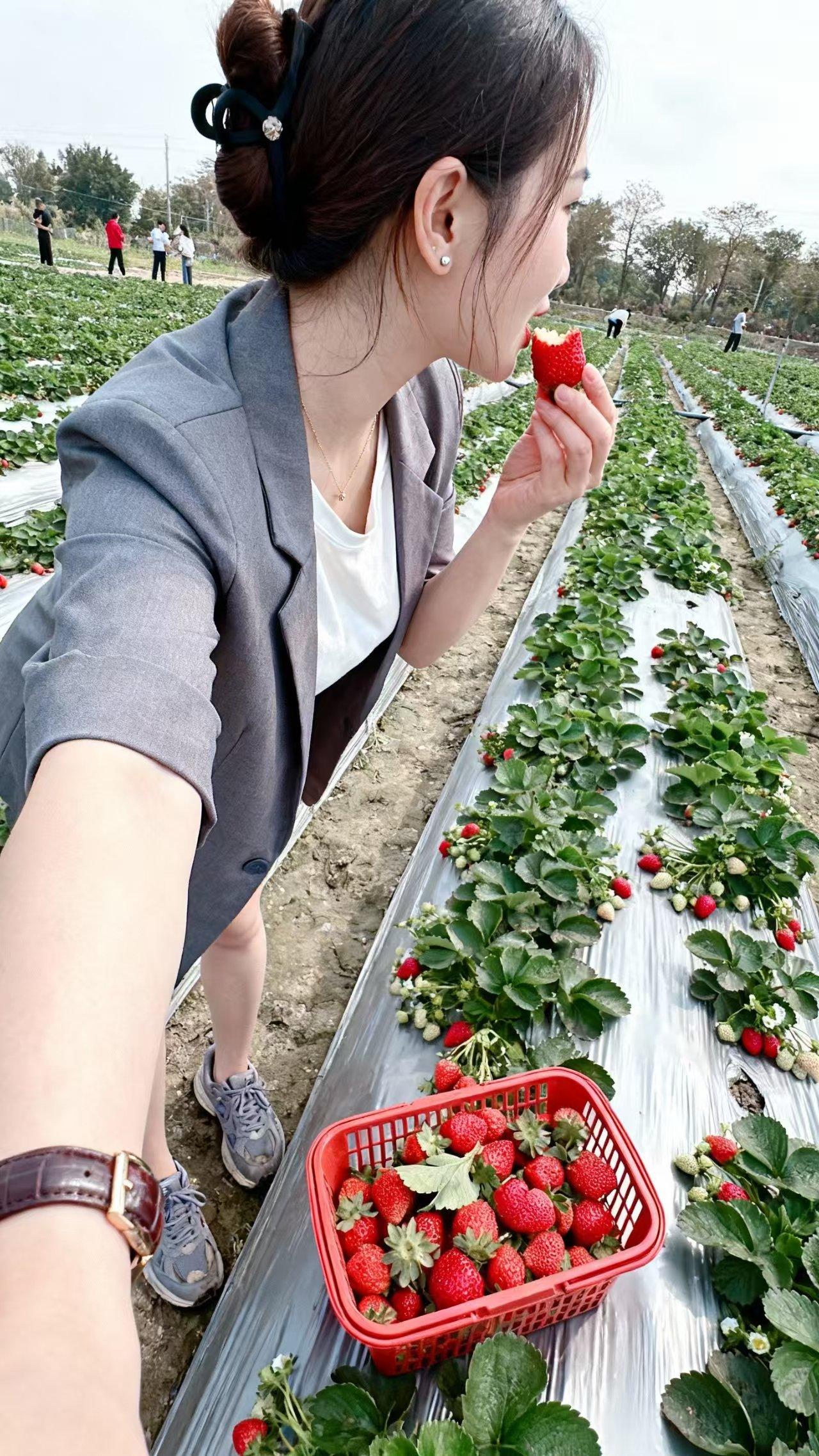 摘草莓 新农人计划 农村生活记录 果园采摘 冬天里的第1颗草莓。