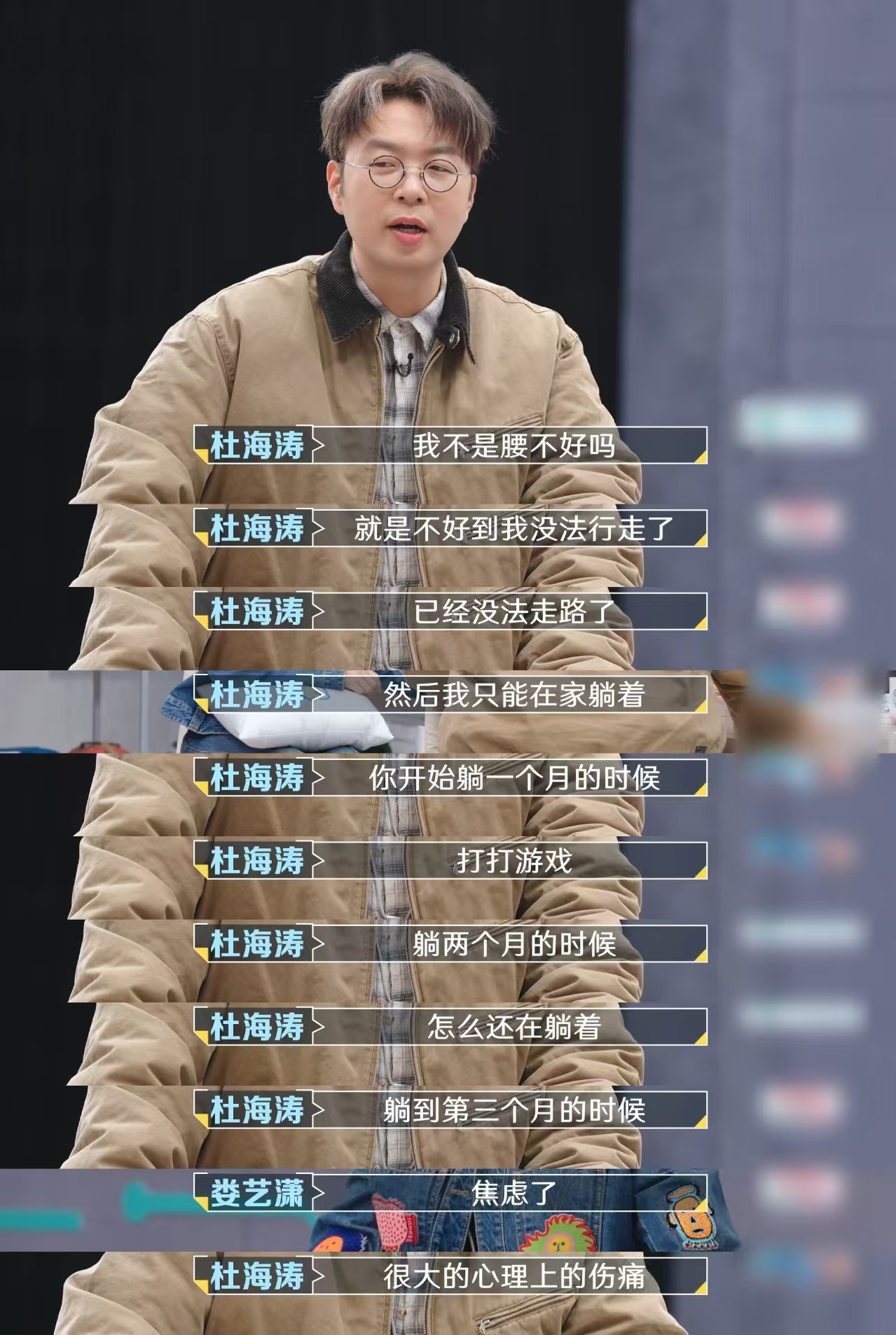 杜海涛自曝因腰伤在床上躺三个月 天呐,原来海涛经历过这么难熬的时刻!三个月完全不能动,从最初的新鲜感到后来的极度焦虑,这种心理落差太让人心疼了