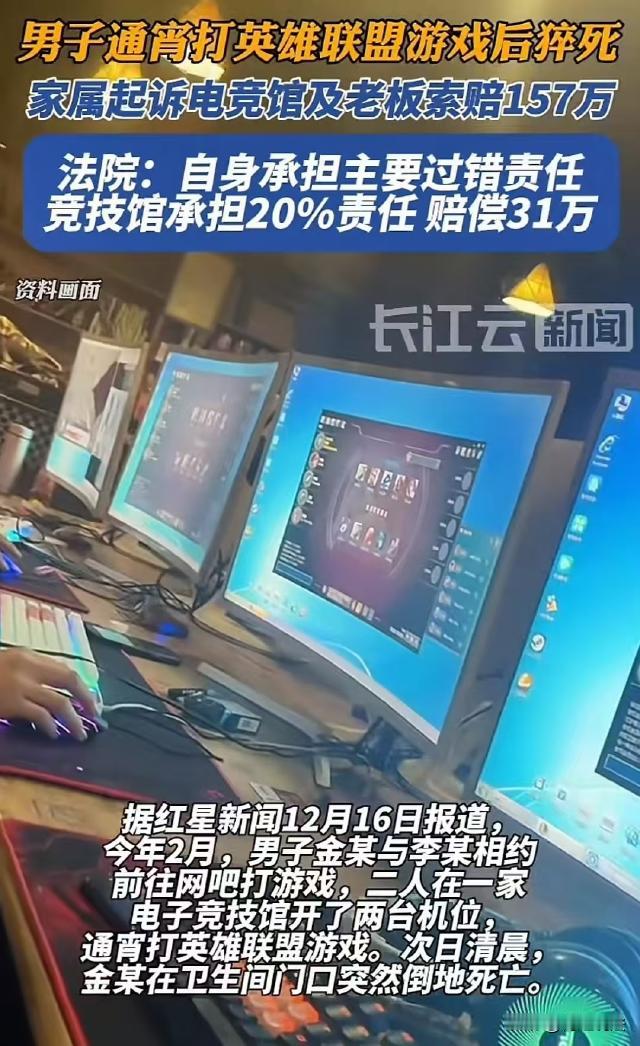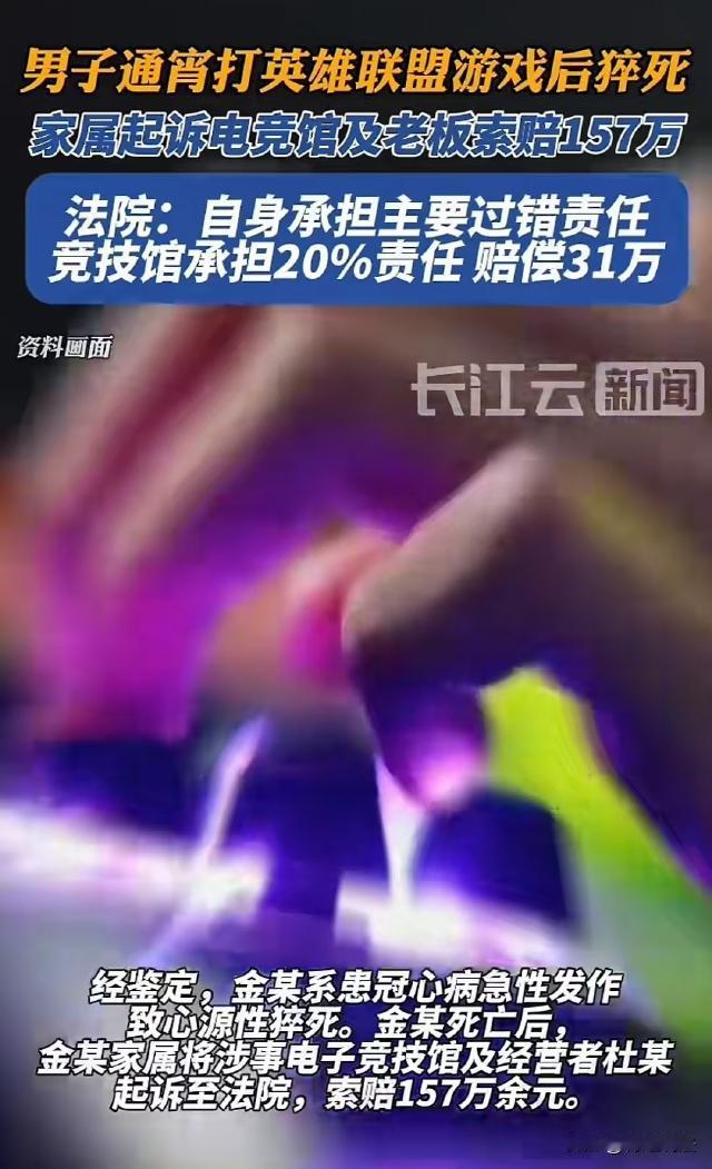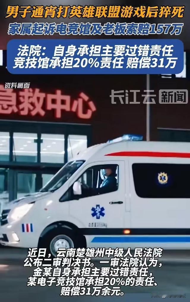 云南楚雄,30岁男子金某和朋友李某相约去网吧通宵打游戏,第二天一早,金某去上厕所时,突然在卫生间门口摔倒猝 死了。金某家属认为电竞馆没有尽到安全保障义务,要求赔偿157万余元,可对方却连连喊冤:他自己发 病,和我们有什么关系? 据红星新闻、长江云新闻报道,今年2月23日晚上8点多钟,30岁的金某和朋友李某相约一块去通宵玩游戏。 当天晚上9点钟左右,二人来到了一家电子竞技馆,李某付了58元网费开了两台机子,两人组队,打起了某某联盟游戏。 玩到10点24分的时候,金某通过电脑自行将消费模式改为了“通宵包夜”。 第二天早上6点10分左右,李某撑不住了先行回家睡觉,金某也没再继续玩,改为看邻桌的一个小伙玩。 转眼又是一个多小时过去,7点21分时,金某离开座位去卫生间洗手台洗了一把脸,几分钟后他再次返回,在准备进入卫生间时,突然扑通一声摔倒。 15分钟后,有人过来上厕所,发现了趴在卫生间门口的金某,此人喊了金某几声,见他不答应,就赶紧去外面喊人。 六分钟后,两个网管和发现金某的路人将金某翻过来躺在地上,发现他嘴唇发紫,脸色惨白,已经没气了。 1分钟后,也就是7点47分,网管打了120,过一会又报了警。 8点4分,急救人员到场,在抢救了金某50多分钟后,宣告金某死 亡。 后经鉴定,金某患有冠 心 病,死因是疾 病发作导致的心 源 性 猝 死。 案发后,金某的家属久久无法接受,他们认为,电竞馆没有尽到安全保障义务,于是起诉电竞馆和实际经营者杜某连带赔偿157万余元。 可电竞馆认为,金某自己有病还通宵上网,他应该对自己的行为负责,而且,金某离世是因自身疾 病发作,和他们无关。 一审认为,金某作为具有完全民事行为能力的成年人,理应对自己的身体健康和行为负责。 《民法典》第十八条规定,成年人为完全民事行为能力人,可以独立实施民事法律行为。 金某生前患有高 血 压和脂 肪 肝等病,作为成年人,应当具备公众普遍认知的健康卫生常识,而通宵熬夜很容易引起心 脑 血 管疾 病发作。 金某明知自己的身体状况,仍和朋友去电竞馆通宵玩游戏,并且,在朋友离开后,还继续逗留在游戏场所玩乐。 金某无视自身身体潜在的风险,是导致自身疾 病 突发并最终死 亡的主要原因,所以金某自身应承担主要的过错责任。 而电竞馆违反营业时间规定,未及时发现金某情况并提供救助,也应该承担一定责任。 《互联网上网服务营业场所管理条例》第二十二条明确规定:互联网上网服务营业场所每日营业时间限于8时至24时。 《民法典》第一千一百九十八条规定,宾馆、商场、银行、车站、机场、体育场馆、娱乐场所等经营场所、公共场所的经营者、管理者或者群众性活动的组织者,未尽到安全保障义务,造成他人损害的,应当承担侵权责任。 该电竞馆违反上述条例,通宵开展营业活动,本身就存在一定的法律风险,反映出其在经营管理上的不规范。 并且,该电竞馆在非法定的营业时段营业过程中,还存在多方面未尽安全保障义务的情况。 首先,电竞馆未对消费者尽到注意自身健康安全的充分提醒、告诫、劝导等义务。 金某作为消费者进入电竞馆通宵玩游戏,电竞馆有责任提醒他长时间熬夜对身体健康的危害,但该电竞馆并没有履行这一义务。 其次,电竞馆未及时巡查发现相关的异常现象。 金某在卫生间门口摔倒长达15分钟后才被人发现,这说明电竞馆在巡查管理方面存在严重缺失。 如果电竞馆能够按照合理的管理规范进行定时巡查,很可能会更早发现金某的异常情况,从而有可能争取到更多的抢救时间。 最后,金某疾病发作倒地后,电竞馆未及时发现进行救助。 虽然最终网管在发现金某情况后拨打了120和报警电话,但发现时间过晚,与金某在其营业场所内死 亡的结果之间存在一定的因果联系。 因此,电竞馆应承担次要的过错责任。 最终,一审经过核算,确认金某死 亡后的经济损失为1574786.50元,金某应自行承担80%责任,电竞馆承担20%责任。 因杜某为该独资电竞馆的投资人,因此依法应以其个人财产对企业债务承担无限责任。 最终,一审判电竞馆赔偿金某家属314957.30元,杜某承担连带赔偿责任。 一审判决后,双方均不服提起上诉,二审维持原判。