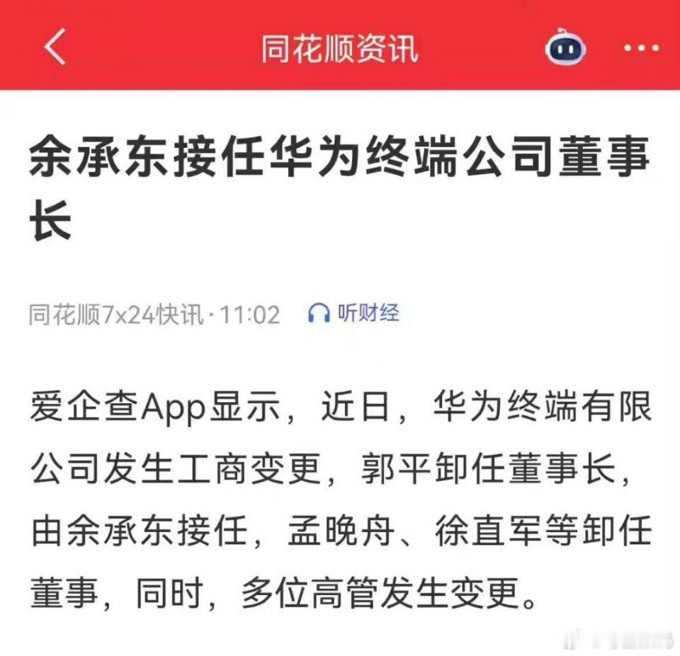 孟晚舟卸任华为终端公司董事余总接任华为终端公司董事长了