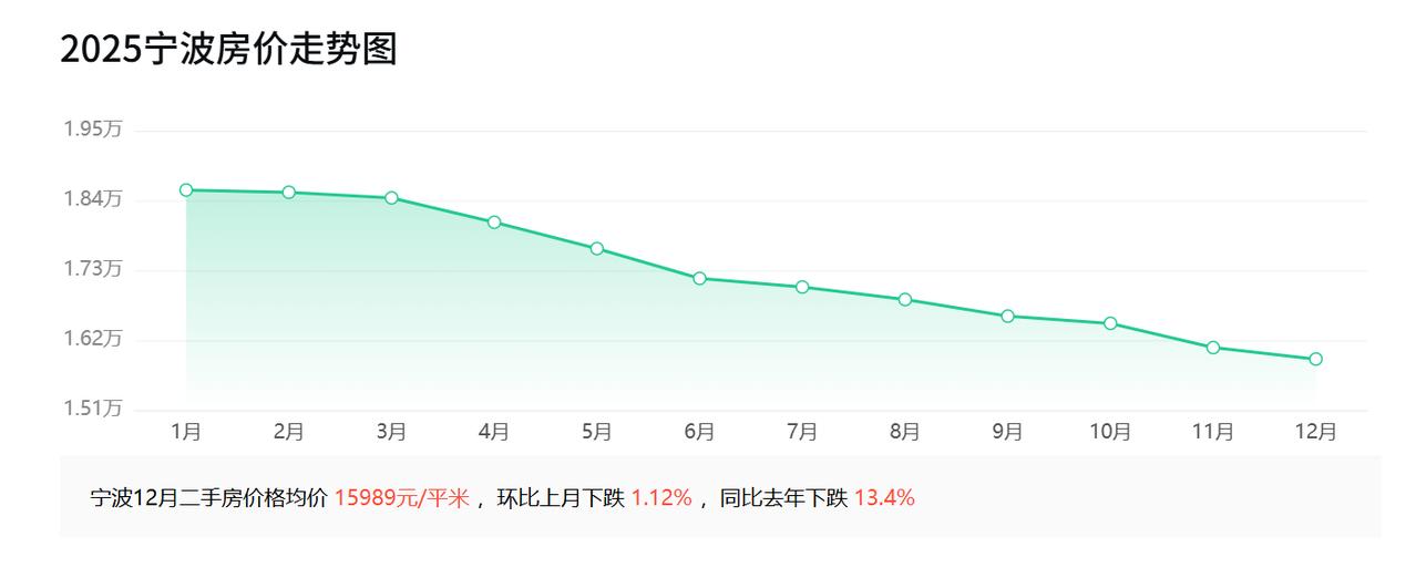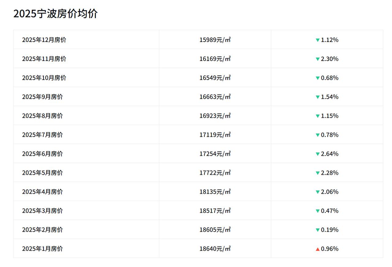 2015年11月,宁波房价均价12273元; 2016年11月,宁波房价均价13509元; 2017年11月,宁波房价均价16714元; 2018年11月,宁波房价均价20445元; 2019年11月,宁波房价均价22454元; 2020年11月,宁波房价均价25757元; 2021年11月,宁波房价均价27279元; 2022年11月,宁波房价均价26664元; 2023年11月,宁波房价均价24239元; 2024年11月,宁波房价均价18552元; 2025年11月,宁波房价均价16169元。   回顾宁波十年的房价,2025年11月的16169元相比2015年11月的12273元,增长了3896元。相比2025年1月的18640元,下降了2471元,环比2025年10月的16549元,下降了380元。   2025年前三季度,宁波GDP达13492.9亿元,按不变价格计算,同比增长5.0%,增速低于上半年0.1个百分点,也低于全国水平0.2个百分点。分产业看,第一产业增加值301.1亿元,增长3.6%;第二产业增加值5736.5亿元,增长4.3%,其中工业5262.0亿元,增长5.6%;第三产业增加值7455.3亿元,增长5.5%。三次产业之比为2.2∶42.5∶55.3。三次产业对GDP增长的贡献率分别为1.6%、38.9%和59.5%。   截至2024年末,宁波市常住人口为977.7万人,城镇化率为80.9%。   宁波房价2025年11月比2025年1月下降了2471元,下降幅度不小,价格基本上回归到2017年水平。不过也得看区域,核心区域的房价不降反增,远郊地区房价下跌明显,拉低了整体平均价格。   那么,在刚刚过去的11月份,大家对宁波的楼市有什么切身的体会,咱们在评论区聊一聊。