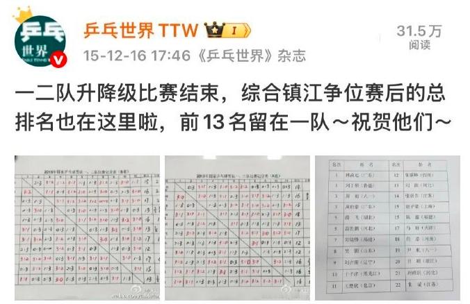 今天是入选国家一队10周年。2015年12月16日,王楚钦凭借在一二队升降级比赛中获得的第11名,入选国家一队。当年这份名单上的人有的匆匆来过,有的默默耕耘,十年间各有各的在走。王楚钦入选国家一队10周年