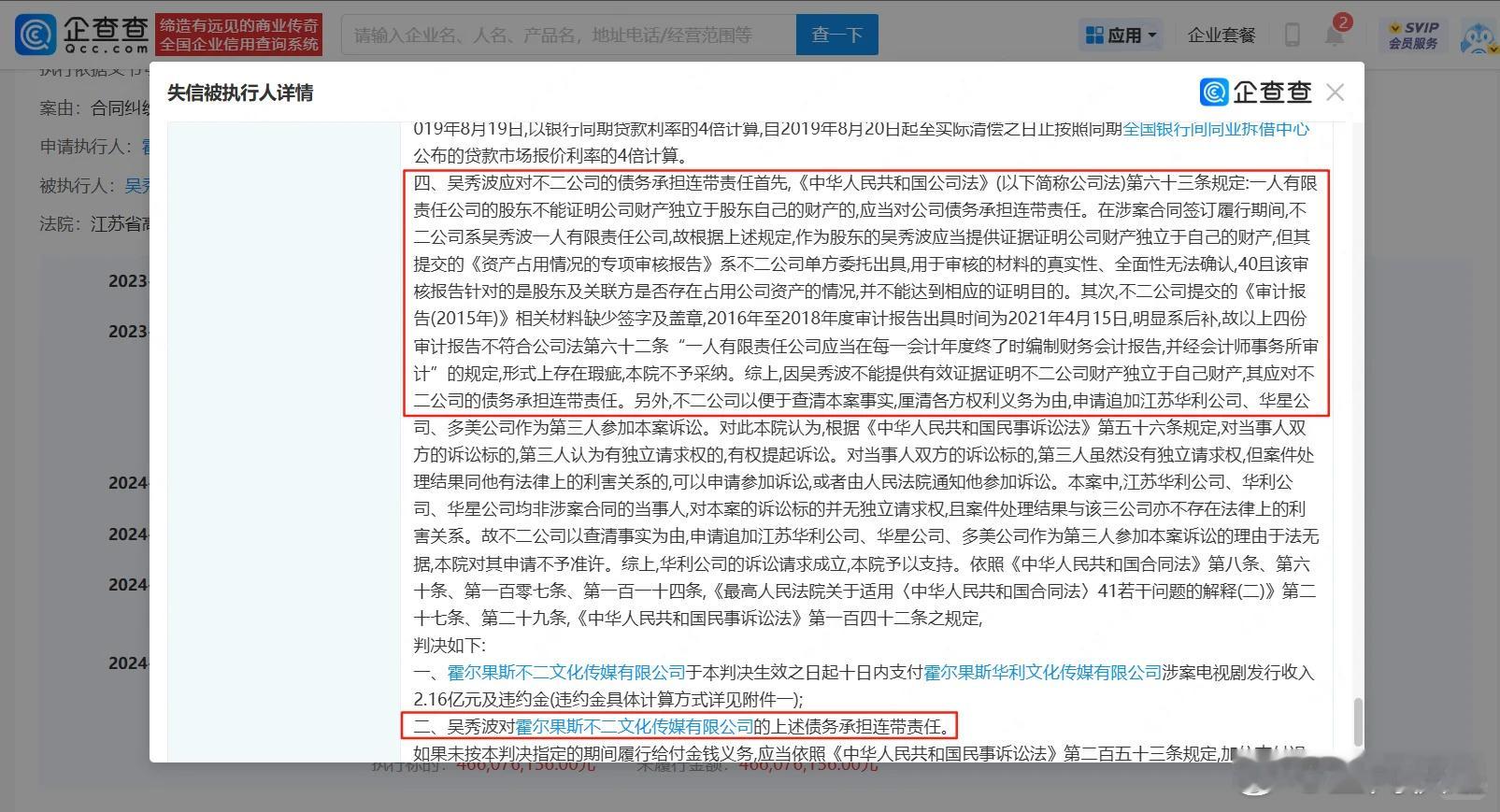 吴秀波被执行6200万吴秀波 新增一则被执行人信息,执行标的6200万余元,执行法院为北京市第三中级人民法院。不过这6200万只是冰山一角!据悉其名下公司因《军师联盟》收益纠纷等案件,累计被执行金额已超7.6亿,还因此成了失信被执行人,这数额真的让人惊到了…吴秀波吴秀波被执行6200万