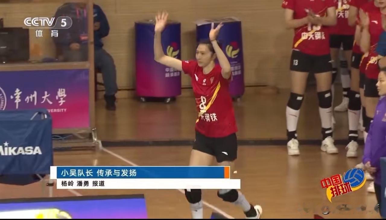 吴梦洁的排面[赞][赞]央视花6分钟时间专题报道江苏女排新任队长吴梦洁,标题为:小吴队长,传承与发扬!全运会后,江苏女排一部分老将都退役了,那个之前江苏女排的“爱哭包”成了队长,成了江苏女排主攻组里面年龄最大的一位,也学着姐姐们的模样来进行传帮带队内的小妹妹们,教练和队友们都肯定了小吴队长的作用!今年这一年联赛,对吴梦洁的考验会非常大,江苏女排的重担在她的身上,带着妹妹们卫冕联赛冠军有点难,看明天打上海女排这场的表现吧!