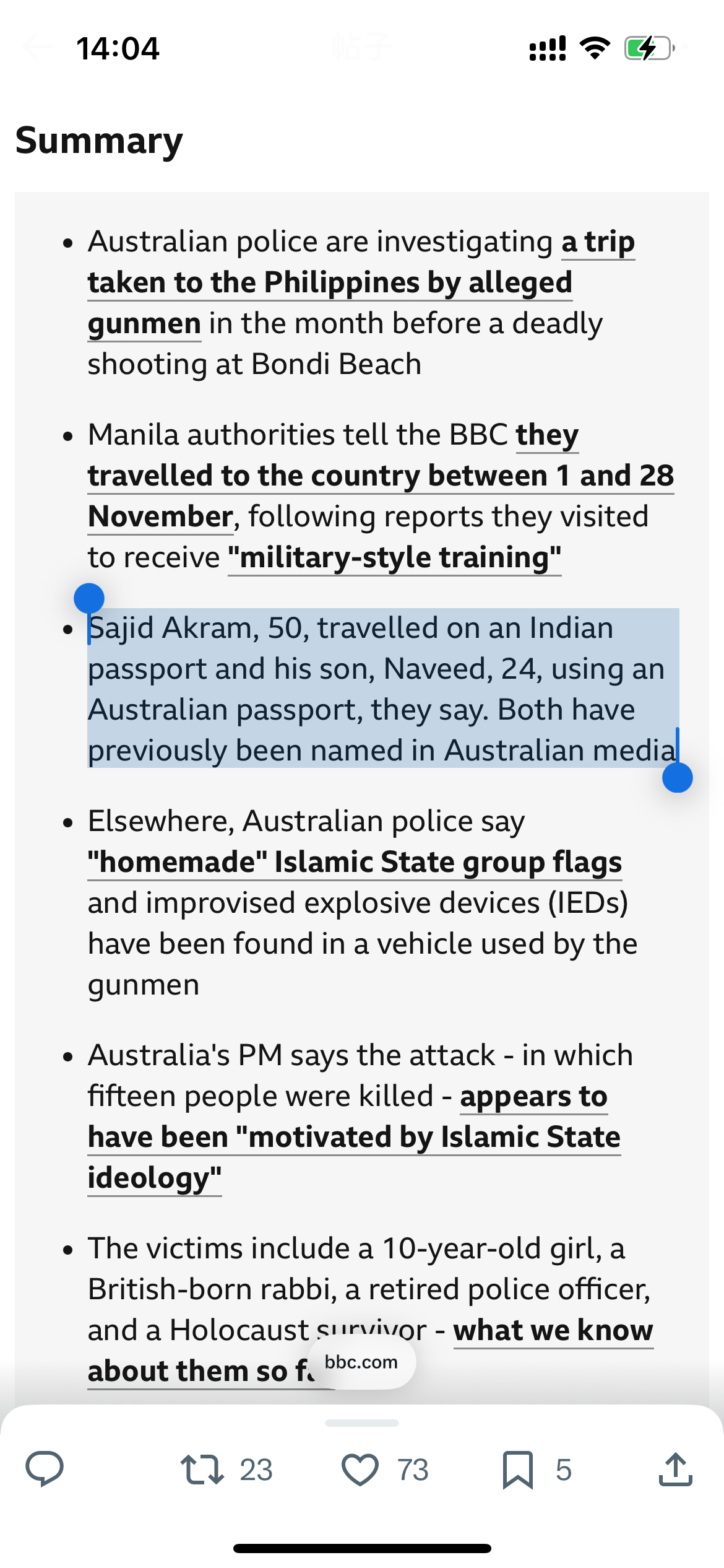 得,邦迪海滩枪击案两名枪手中的那个父亲,是印度人……这是被菲律宾官方爆出来的,