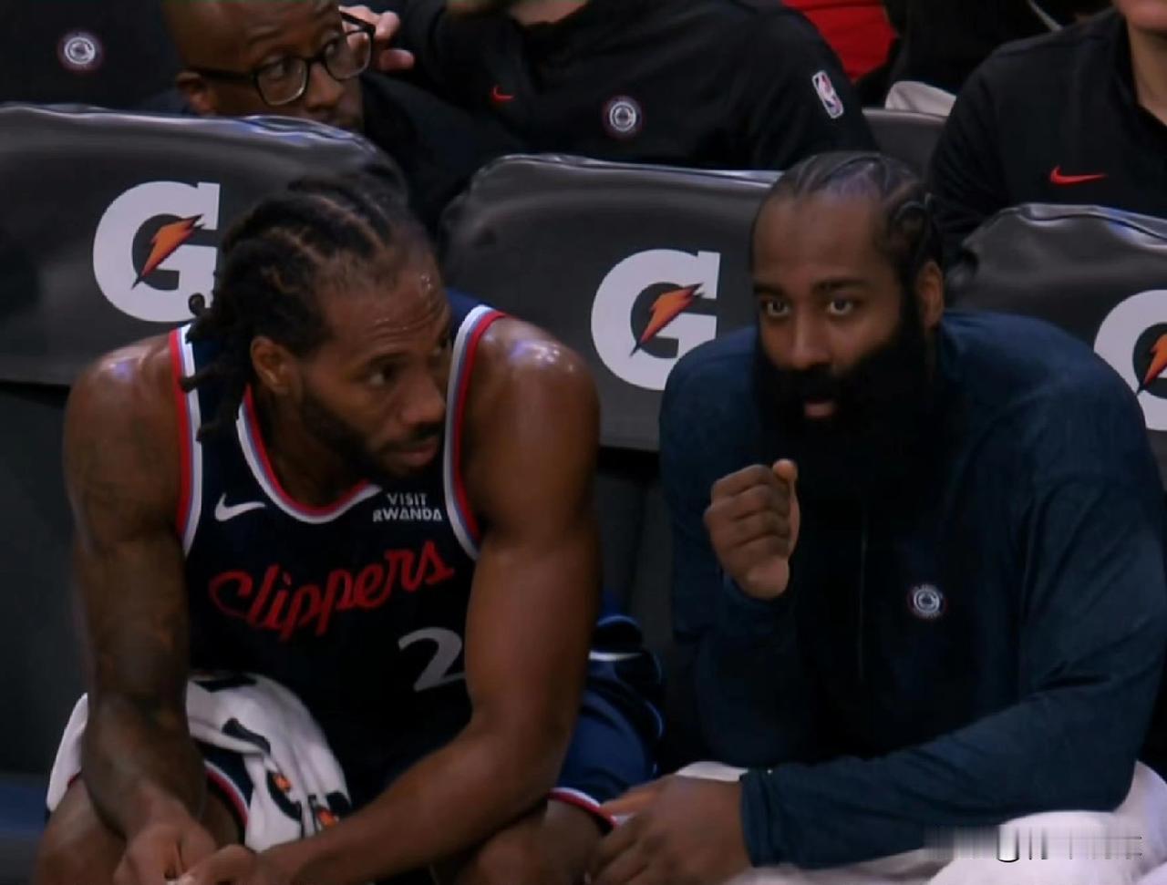 四连败了!哈登、伦纳德会聊啥呢? 今天,主场对阵的快船队以103-121惨负灰熊队,遭遇四连败。第四节3分33秒,快船队败局已定,泰伦-卢换下所有的主力球员。镜头给到替补席上的伦纳德和哈登,两人正在进行沟通交流,似乎对本场比赛的部分细节有所不满。值得一提的是,本场比赛哈登还是带伤出战,他在比赛开始前30分钟才决定上场,但依旧无法给球队带来一场胜利。 快船队自11月1号以来还未在主场赢过球,近10场比赛仅赢了1场,战绩来到了6胜20负,赢一场球对快船队来说已经成了奢望。继续输下去无疑将激化队内矛盾,球迷也不会买账,快船队得有所行动了!