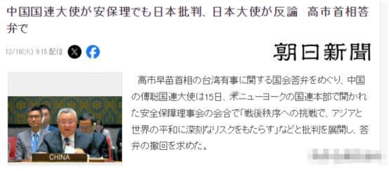 12月16日,日本《朝日新闻》报道说:“中国代表又在安理会批评日本,日本大使进行了反驳。”报道说,中方批评日方挑战二战后的国际秩序、破坏世界和平,并要求日方撤回错误言论,日方给予反驳。 先说第一个“不恰当”的论调。山崎反复强调“总这样争论损害联合国建设性讨论”,却绝口不提争论的源头:日本首相高市早苗将台湾问题与日本“存亡危机”挂钩,暗示武力介入。 这不是普通的外交分歧,而是对《开罗宣言》《中日联合声明》等国际法律文件的公然践踏。中方连续追问日方“一贯立场”究竟是否包含一个中国原则,得到的却是顾左右而言他。 就像有人在法庭上被质问杀人动机时,反复念叨“吵架影响法庭秩序”,这种回避核心问题的话术,本质是用程序正义掩盖实质违法。 再看所谓“防务不威胁和平”的辩解。山崎称“排他性是防务基础”,却故意忽略日本近年的军事动作:防卫预算十三连增,远程导弹、航母改造、武器出口松绑,甚至试图突破“无核三原则”。 这些行为早已超出“专守防卫”范畴,更遑论台湾是中国内政,日本将其纳入“存亡危机”,等于单方面为武力干涉找借口。 历史上,日本军国主义正是以“自卫”为名发动侵略,如今这套话术不过是旧瓶装新酒。 当被问到这些扩张行为时,日方总以“防御中国”回应,却忘了《联合国宪章》明确禁止以“推测的威胁”为由动武,真正威胁和平的,从来不是受害者的警惕,而是加害者的伪装。 最讽刺的是“对话解决分歧”的呼吁。日方一边在联合国告状,一边拒绝回答“是否坚持一个中国原则”这个是非题。 就像两个人争执时,一方先说“我没错”,然后掏出争吵时的录音剪辑,唯独删掉自己辱骂对方的部分。 中方多次提出双边对话,日方却选择在国际场合造势,甚至拉拢域外势力。这种“只喊对话,不谈实质”的姿态,暴露了其真实目的:不是解决问题,而是制造“中国欺凌日本”的舆论幻象。 更值得注意的是,日本国内正义人士和前首相都公开批评高市言论,国际社会也罕见沉默,这种孤立恰恰说明日方理亏。 三场答辩,三个逻辑断层,背后是同一个心虚:日本不敢直面三个根本问题,台湾是否属于中国?战后国际秩序是否包含对侵略历史的清算?《中日联合声明》是否还算数?这些问题不是中国设的套,而是日本70年前自己签的字、发的誓。 当山崎在安理会背诵“和平”台词时,日本右翼正参拜靖国神社,修改教科书,甚至计划在西南诸岛部署导弹。这种言行割裂,让“对话”沦为表演,让“防卫”变成幌子。 联合国不是戏台,国际秩序不是橡皮泥。中方的批评从来不是针对日本本身,而是针对其对二战胜利成果的挑战。 当日本试图用“程序正义”“防御需要”“对话口号”包装干涉行为时,其实是在重复历史的老路,上世纪30年代,日本正是用“满洲国存亡”“自卫反击”的话术,一步步走向侵略深渊。今天的国际社会,不会再被同样的剧本欺骗。 真正的建设性讨论,始于正视问题,而非逃避问题。可惜,从山崎的反驳里,我们只看到了一个不敢直面历史的国家,在国际法理面前的慌张闪躲。