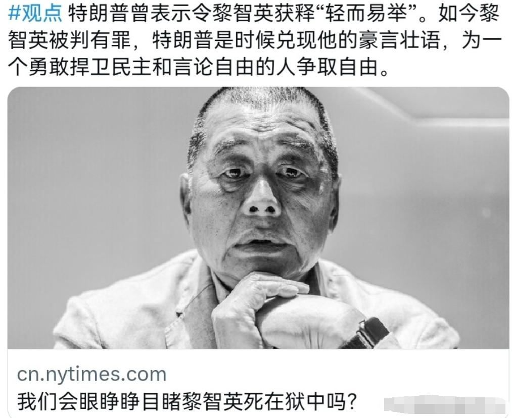 在黎智英被判三项罪名成立之后,美媒坐不住了!美媒表示,西方国家要对中国来硬的,不