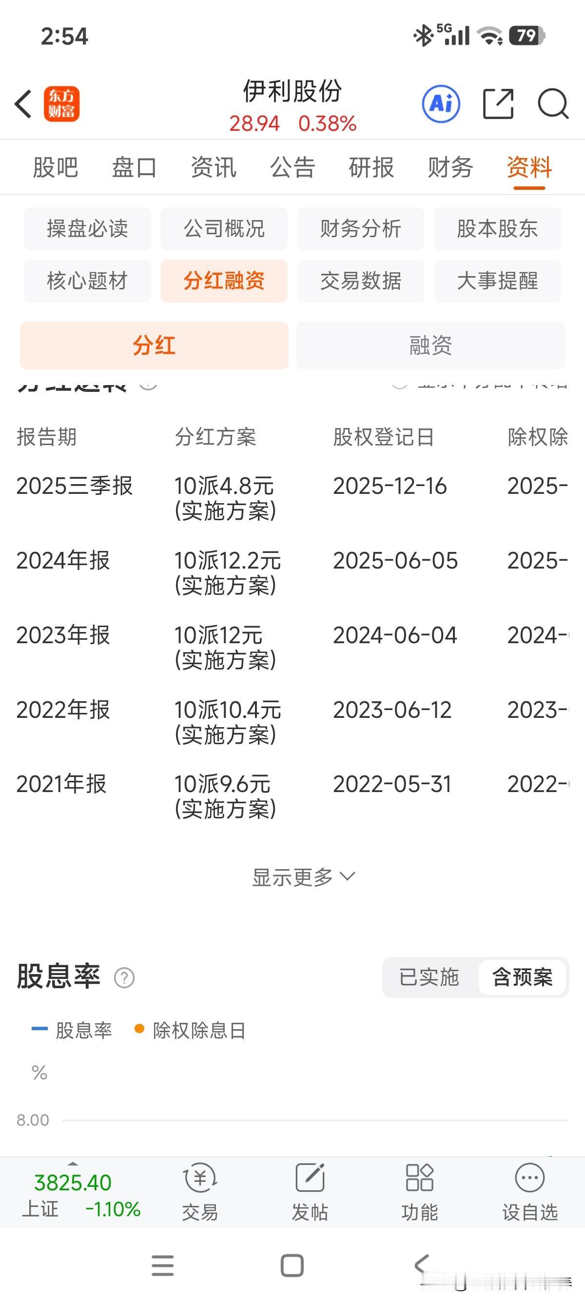 今天股权登记日,晚上就能收到股息了,一个自然年每股分红1.7元![呲牙],6月6日收到股息后开盘就直接复投了,吃了点小亏!这次股息先不急着冲!准备再等等! 最近指数调整,伊利反而走稳了,日线三连阳,这是要抬高复投的成本!反正目前手上消费股仓位也持有不少,不急着!等合适价位再出手!