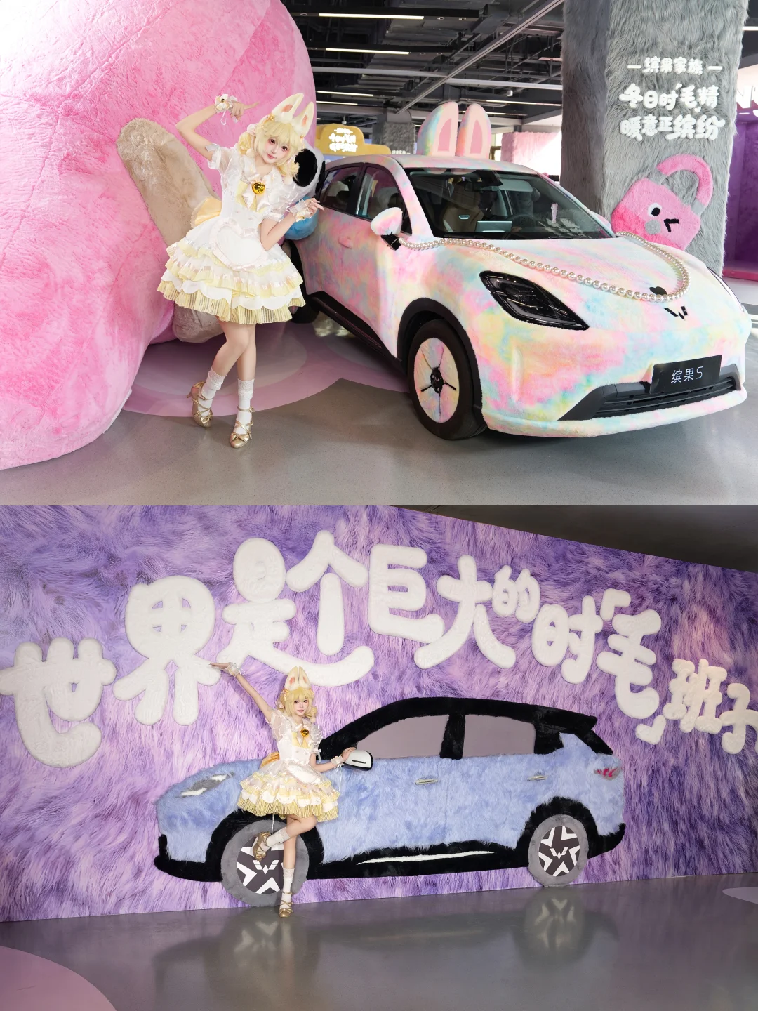 出门去团建啦!🐰 尽然还有毛绒展🐻 都是毛绒绒的,超可爱呢! 拍了好多照片! 没想到还有五菱缤果S毛绒改装车🚗 也太时髦了把!