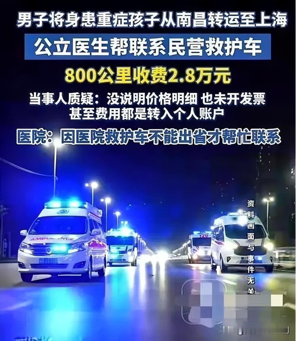 “天价救护车”涉事医院被罚没8.7万,规范医疗转运刻不容缓 2025年12月,南昌赣医医院有限公司因“天价救护车”事件被南昌市市场监督管理局罚没8.7万元。此前,该医院员工私自转运患者,800公里路程收取2.8万元转运费,且未对救护车及员工有效管理,存在公示标价外加收价款、使用过期药物、超标准及重复收费等行为。此次处罚敲响警钟,规范医疗转运刻不容缓。