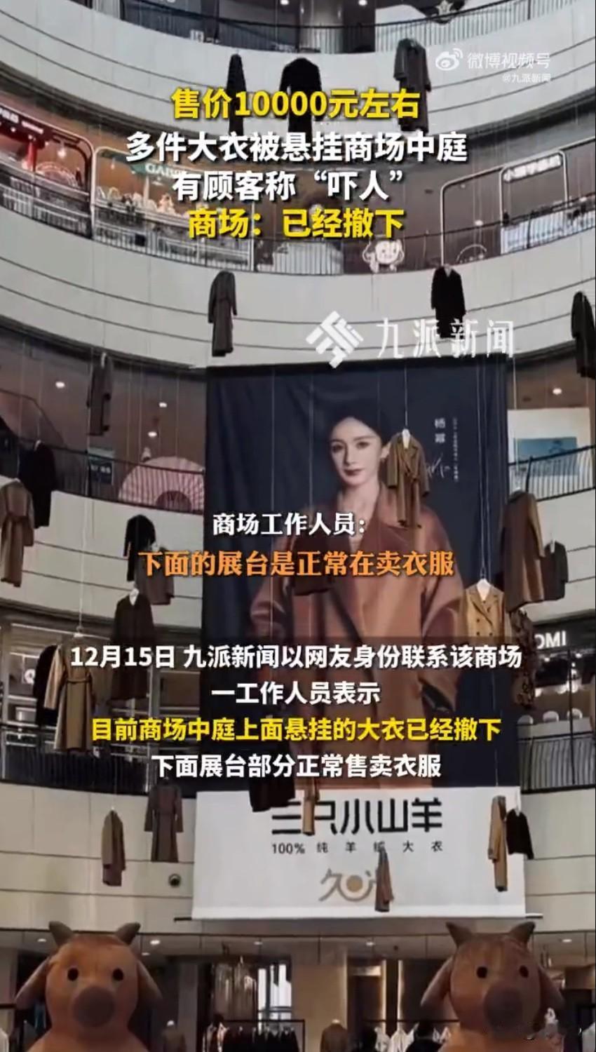 最近上海南京西路久光百货可太火了,但火的不是啥好事,而是中庭那片“吓人的悬衣阵”,不少网友逛个街差点被吓出心理阴影,本来大家开开心心去商场购物,结果一进中庭抬头就懵了,几十件深色长大衣悬在半空中,高高低低错落着,还随着空调风轻轻晃悠,中间立着品牌代言人的巨幅海报,那画面说不出的诡异。 有带娃的妈妈吐槽,孩子路过直接指着上面说“有好多人吊在那”,吓得她赶紧把孩子抱走;还有人上电梯时瞥到一眼,后背瞬间发凉,调侃这哪是逛街,简直像进了悬疑片片场,网友们的吐槽更是五花八门,有人说这是“幂级恐惧”,也有人开玩笑说设计师怕不是竞争对手派来的“卧底”,专门来劝退顾客的。 后来大家才知道,这是商场四楼“三只小山羊”品牌新店开业的宣传布置,人家本来是想搞点艺术感,突出自家高端羊绒大衣的垂坠质感,毕竟这牌子的大衣一件售价差不多要一万块,可能设计师在秀场或者杂志上看这种布置觉得高级又有格调,可没考虑到商场是老少咸宜的公共场所,这么多悬空的大衣远远看去,活脱脱像一排无头身影飘在半空,可不就吓人嘛。 其实商场早就接到不少顾客投诉了,大家都反映这布置观感太差,心里不舒服,但工作人员也挺无奈,因为和品牌方签了合作周期的合同,没法提前撤下来,只能先记录大家的反馈再同步给相关部门;那段时间去久光百货的人,要么绕着中庭走,要么抬头看完忍不住吐槽,好好的购物氛围全被这诡异的布置给搅和了。 好在等到原定展览结束的日子,这些引发争议的“空中大衣阵”终于被撤下来了,中庭总算恢复了正常模样,不过品牌的线下展台还在正常售卖,没受啥影响。网友们得知消息后,有人说“终于不用绕道逛商场了”,也有人遗憾没亲眼见识下这“神奇操作”。 这场闹剧说白了就是创意没找对地方,商业宣传想标新立异没问题,但也得兼顾大家的感受,不能为了博眼球就不管不顾。毕竟大家逛街是为了放松消费,没人愿意花钱找吓受,把高端大衣和“诡异”“吓人”绑在一起,反而得不偿失。这事儿也给其他品牌提了个醒,创意再牛也得接地气,不然最后只能沦为行业笑柄。 来源:九派新闻