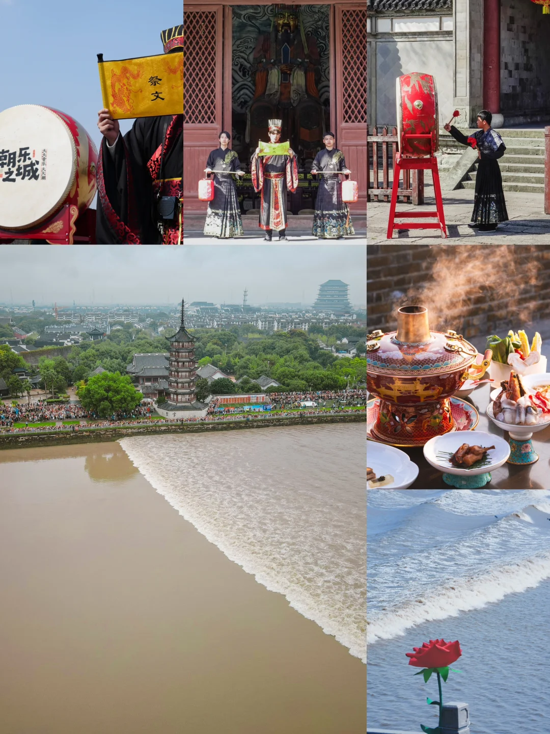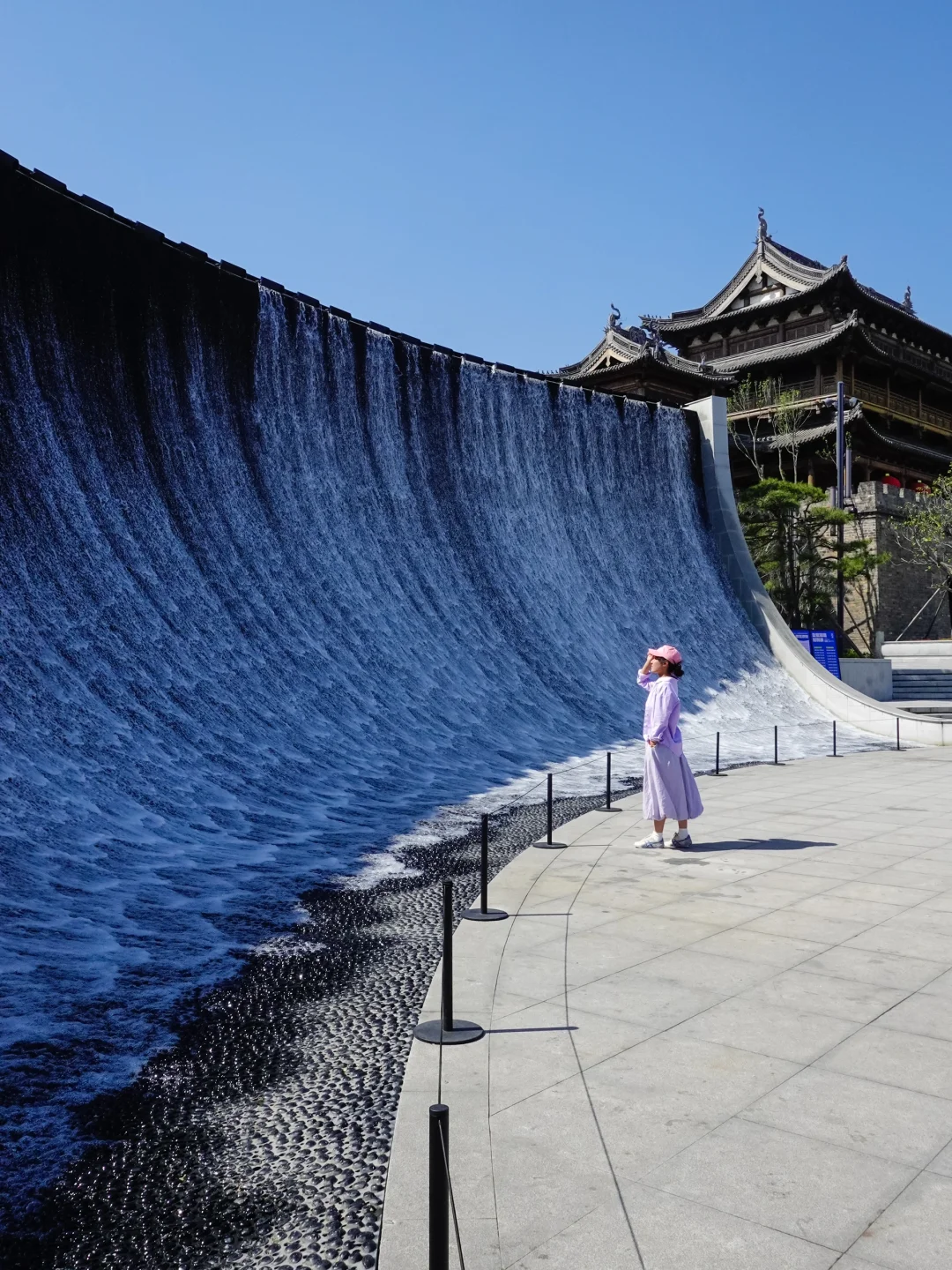 🔺盐官潮墙:🌊景区入口的网红瀑布墙,每个整点开放,超级出片。