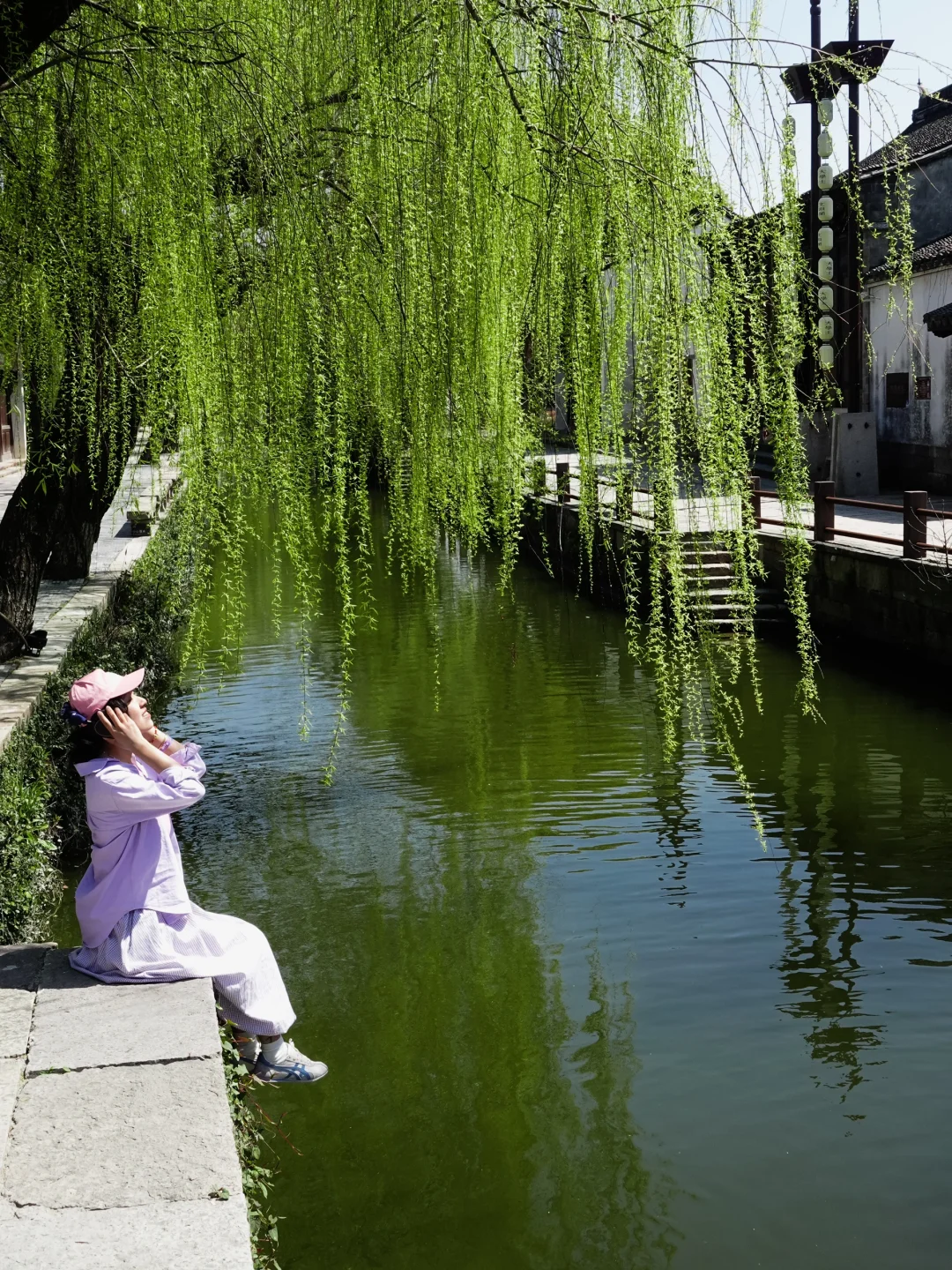 🔺古邑路:河道两边遍布着柳树,嫩绿的柳枝随风摇曳🌿到处都是春天的气息