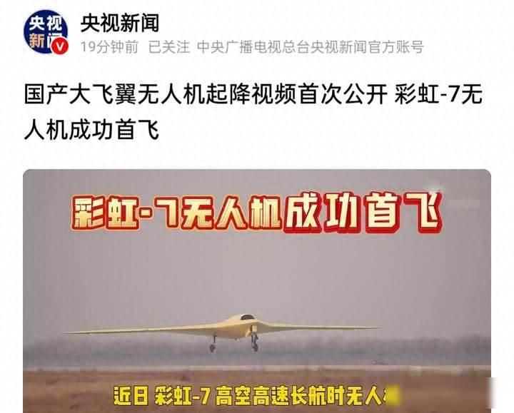 彩虹-7首飞了,它不声不响,却改写了空战规则 那天在西北机场,一架没有尾翼的飞机滑行出去,飞行了二十分钟后平稳降落回来,整个过程没有提前透露消息,也没有举办发布会,央视等到四天后才发布视频,这架名为“彩虹-7”的无人机外形像一块会飞的铁板,实际上内部包含了许多关键技术。 它全身没有垂直尾翼,进气口藏在背部,连螺丝钉也做了隐身处理,涂层中加入稀土材料,雷达照射上去几乎没有反应,有人拿它与B-2对比,认为它更不容易被发现,不是依靠外形来躲避探测,而是主动屏蔽信号,再加上材料吸收雷达波,形成双重保障,这种设计国外还在探索阶段,我们已经成功试飞。 这个飞行器能飞到一万六千米高空,航程超过一万公里,它用的氮化镓雷达可以在九百公里外辨认出航母的轮廓,还搭载了量子通信技术,数据传输几乎没有延迟,更厉害的是它能配合歼-20战机执行任务,往前飞出八百公里侦察路线,让五代机看得更远、打得也更准,有人驾驶飞机和无人机的这种配合,才算得上真正的协同作战。 成本方面确实让人感到意外,这款装备的单价还不到美国B-21的四分之一,所有关键零部件全在国内生产,生产线采用脉动式模式,零件用3D打印制造,出了故障可以现场更换,不用送回工厂返修,西方的高端无人机每造一台要花上半年时间,而我们一旦启动流水线,速度就明显不一样了,这不只是节省开支的问题,更是战时能够迅速补充损失的关键保障。 背后支撑这项成就的,是过去十几项被视作技术瓶颈的关键环节,包括稀土提纯工艺、高温合金材料、微型电子封装技术,如今都已实现自主突破,整条产业链不再依赖进口,形成完整的闭环体系。有人曾认为中国无人机的发展停留在模仿阶段,实际上早已超越跟随模式,开始构建自身的系统框架,涵盖感知、决策到打击的全部环节,整个技术链条正在发生深刻变化。 我确实很佩服这种思路,它不是要去比拼技术有多厉害,而是看重实际用处,它不求一下子达到最高水平,只希望每一步都走得扎实,彩虹-7这款产品不是为了炫耀实力,而是让整个作战系统变得更智能、更省钱、更耐用,它在飞起来的时候,没人需要喊什么口号,效果就摆在那里。