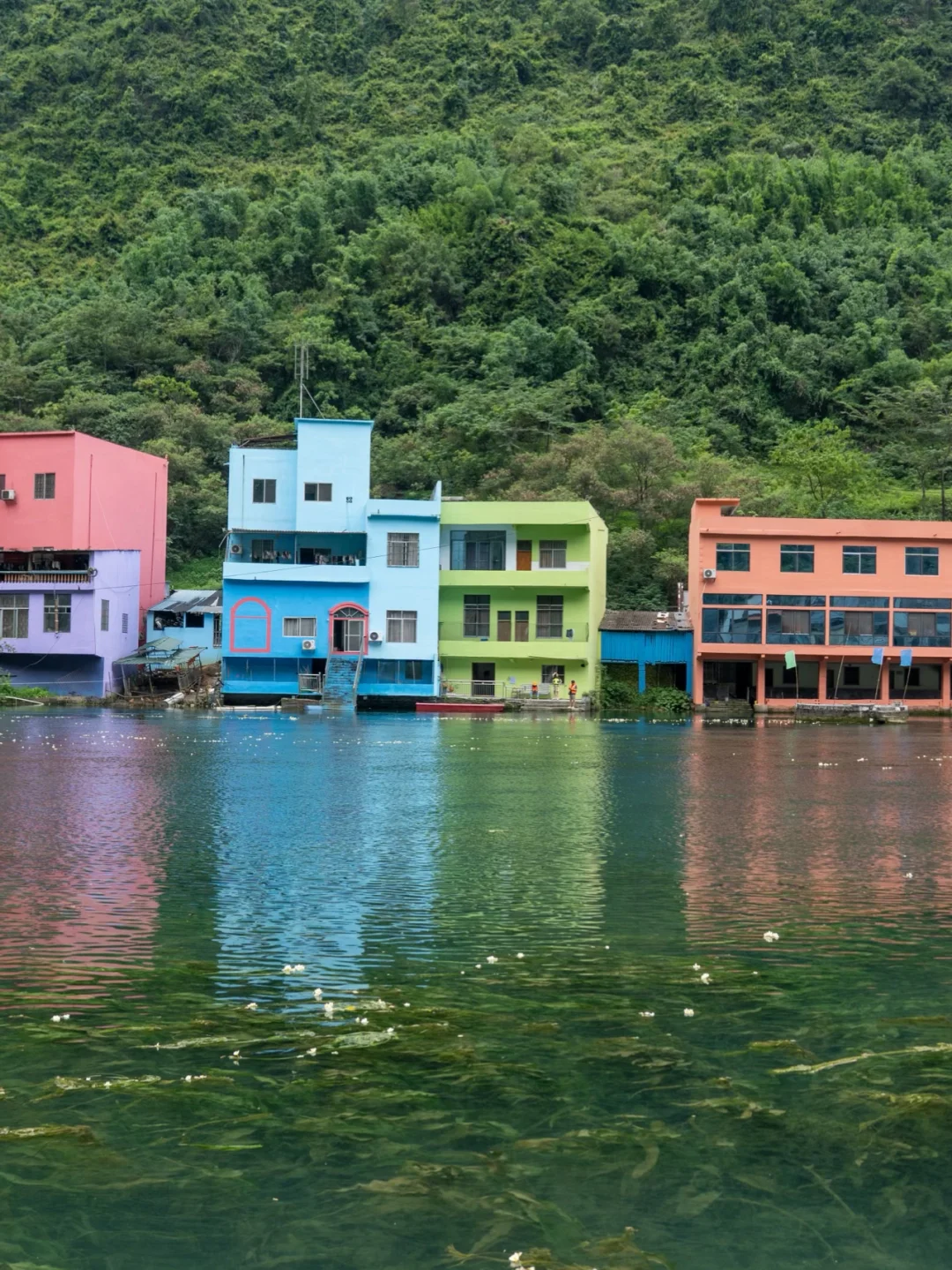 💥亮点:河水蓝到像加了滤镜!水里开满海菜花,真的像星河掉进水里啊啊啊!