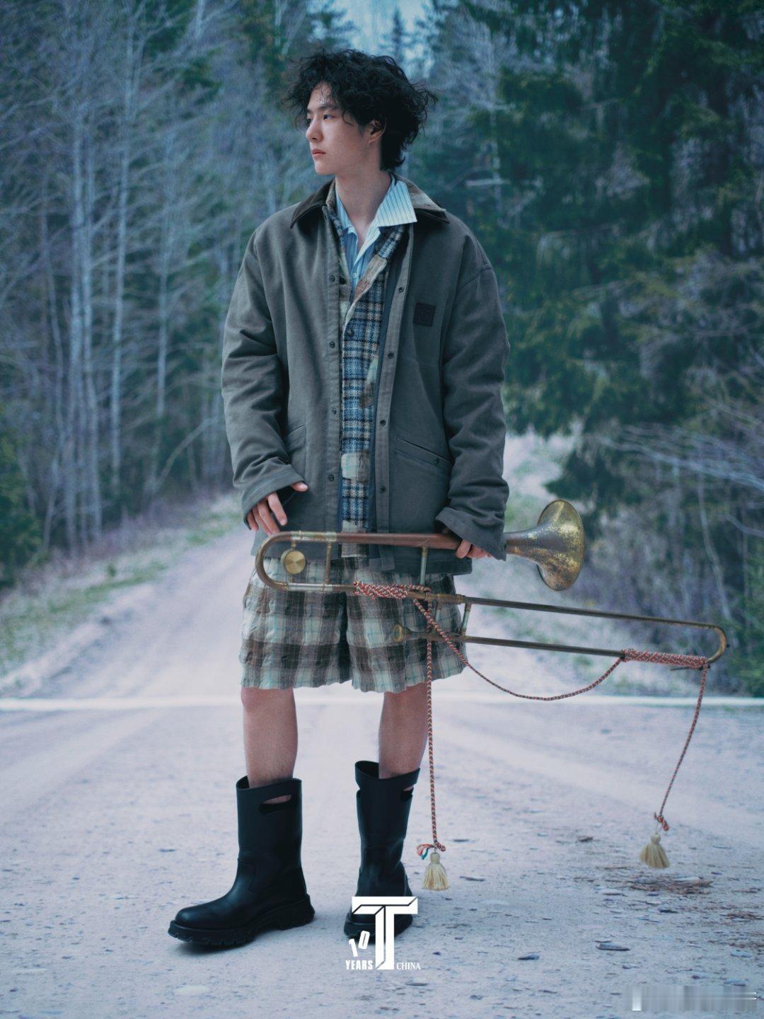 林间小道邂逅复古穿搭,格纹与乐器碰撞文艺气息~ 背影也藏不住的随性范儿,每一帧都是自然与时尚的对话。王一博T锦绣12月刊封面王一博纯粹素颜杂志大片王一博一个人的狂欢杂志大片