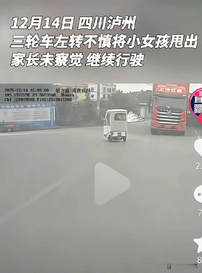 这家长也太粗心了? 近日,四川泸州,王某某(化名)驾驶一辆三轮车带着三四岁的小女