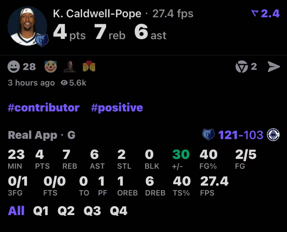 灰熊客场大胜快船,波普替补上场只得到4分却打出了+30的正负值。