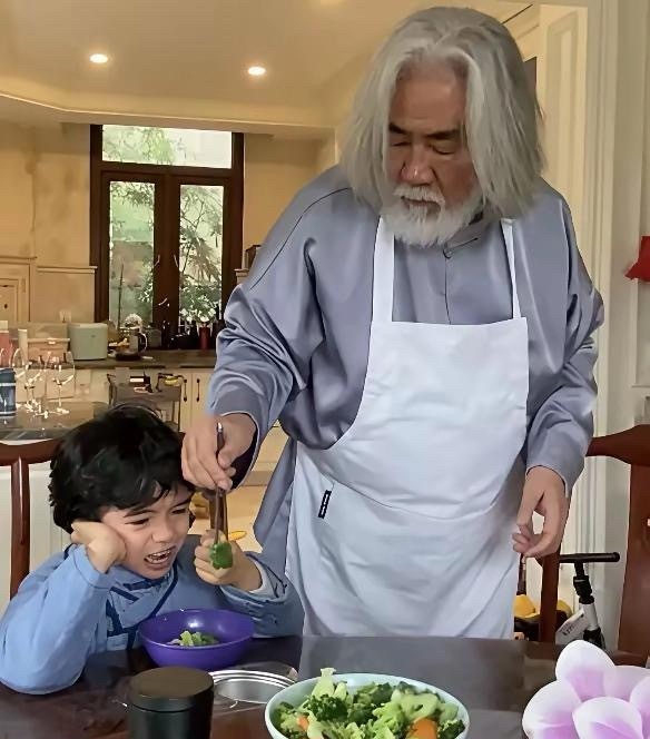 张纪中真的好有耐心,70多抚养四个孩子,尤其是对继子混血儿特别有耐心,走到哪里都