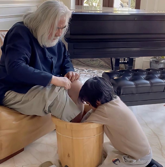 张纪中真的好有耐心,70多抚养四个孩子,尤其是对继子混血儿特别有耐心,走到哪里都带着,在家里也是一起玩耍。 张纪中和杜星霖如今有三个亲生的孩子,一个继子,也是老有所乐。 ​​​