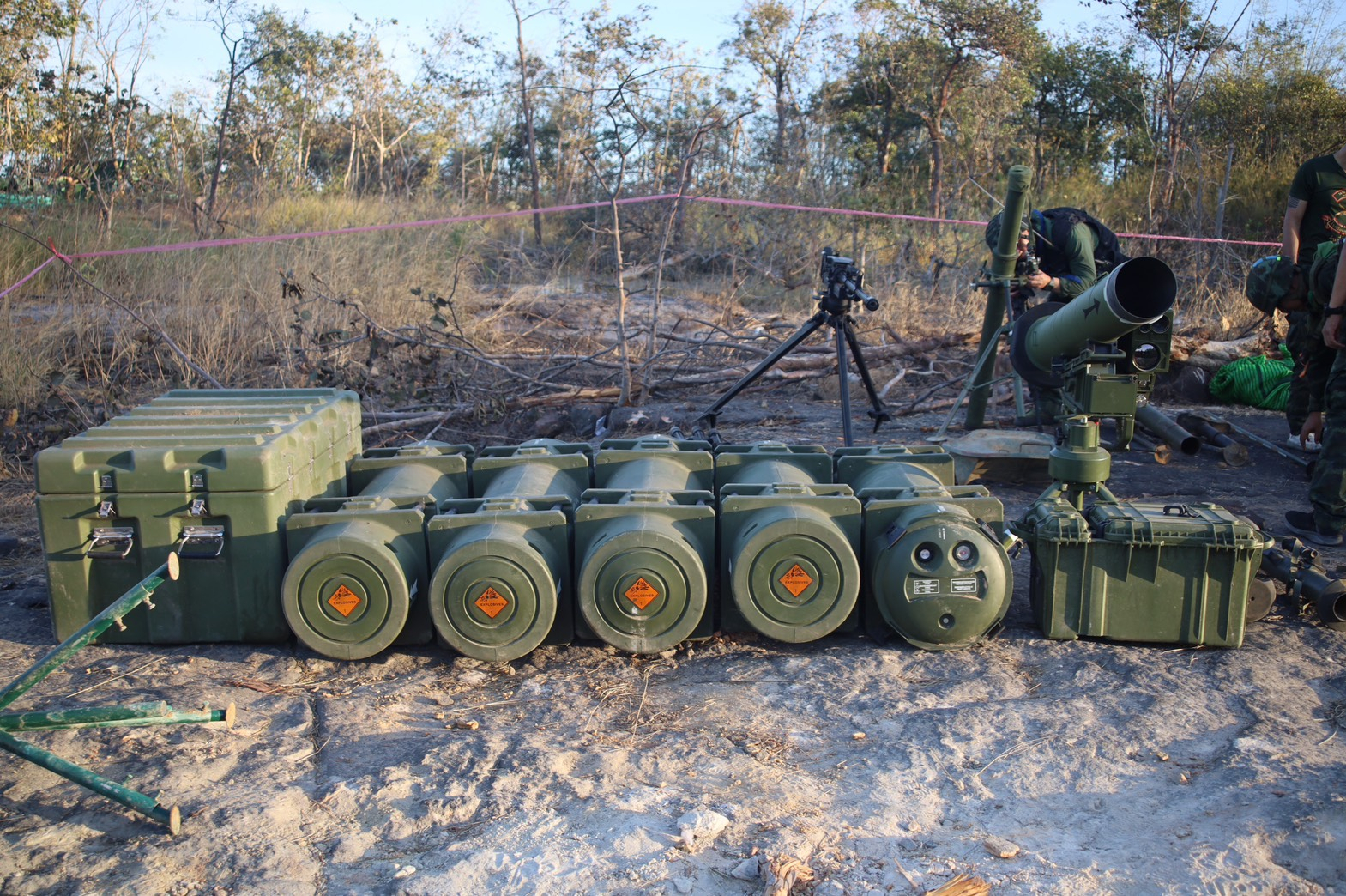 泰柬冲突 泰军缴获的柬军部分装备,纯中械:GAM-102反坦克导弹、89式80mm火箭筒、89式12.7mm重机枪和87式82mm迫击炮,看上去成色都很新