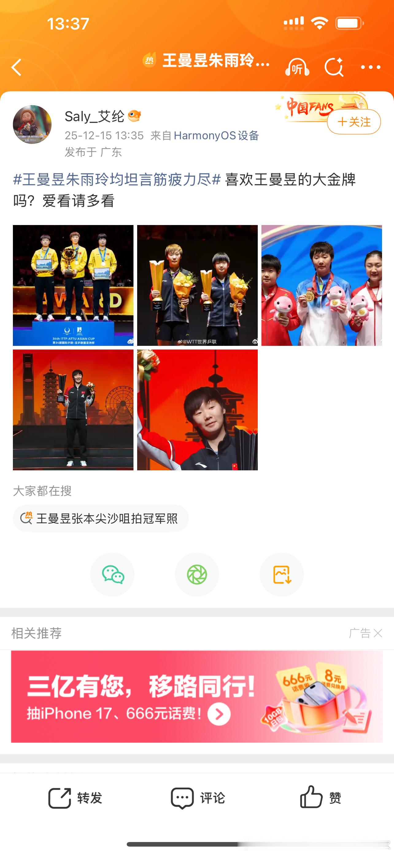 喜欢孙颖莎的世锦赛大金牌和世界杯大金牌么?说话!爱看请多看